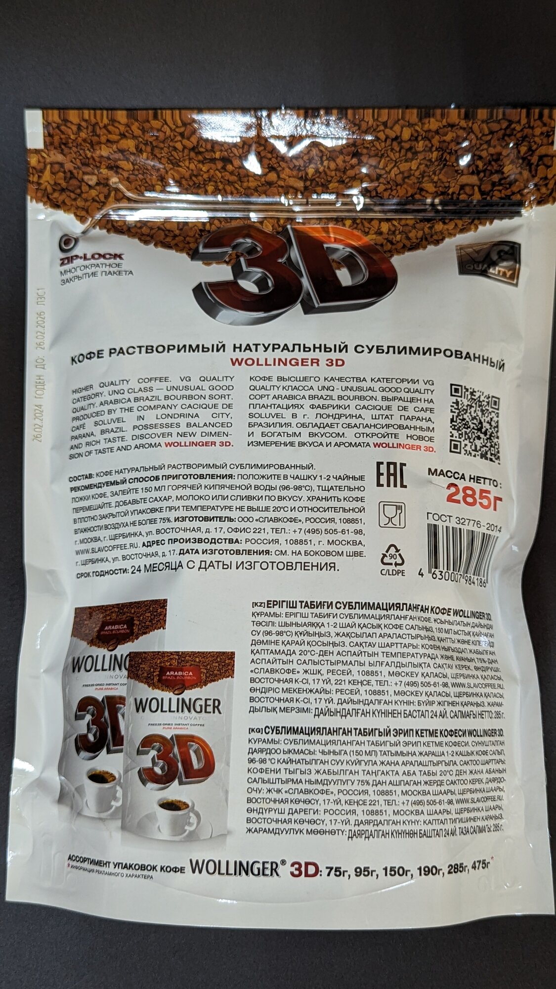 285 гр. кофе Wollinger 3D сублимированный / Воллинджер 3Д