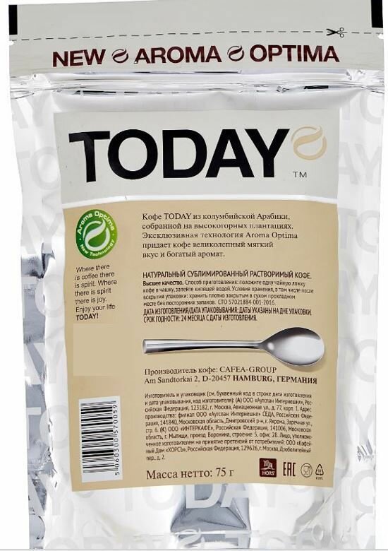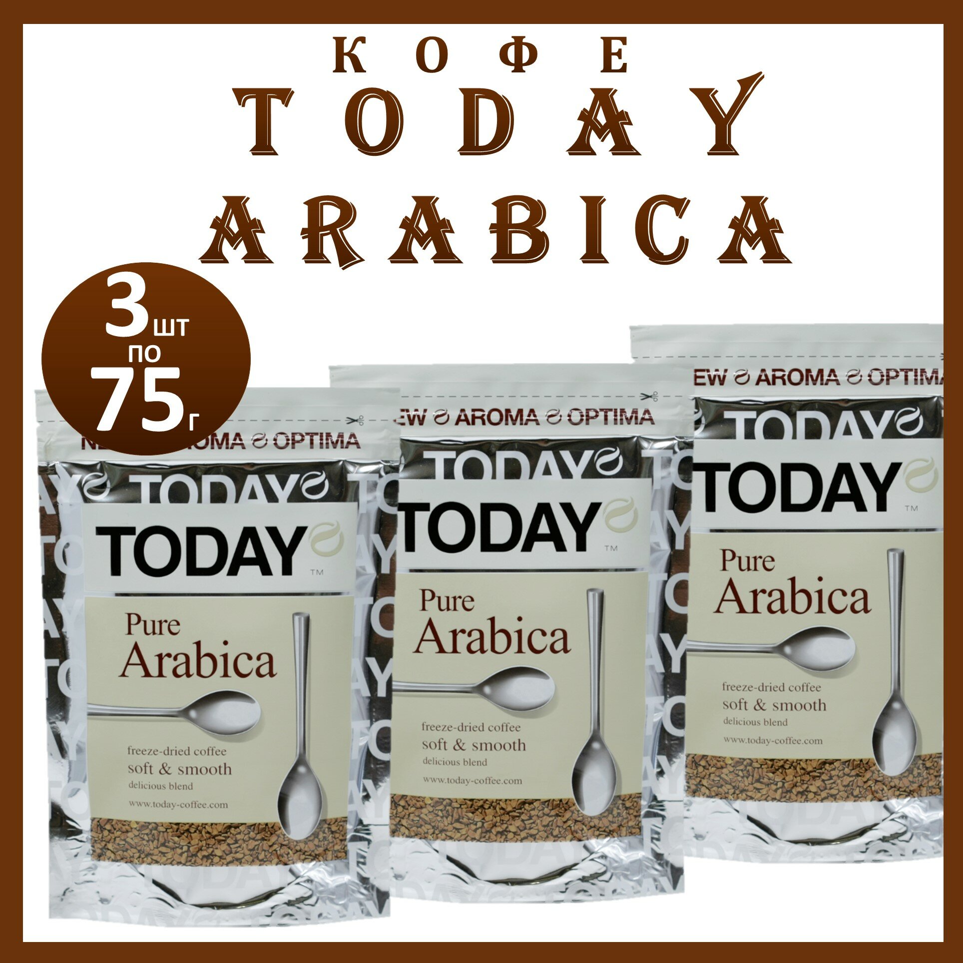 Кофе Тудэй Пюр Арабика набор 3 шт *75 гр (Today Pure Arabica) натуральный растворимый сублимированный мягкая упаковка ZIP-застёжка/Россия/