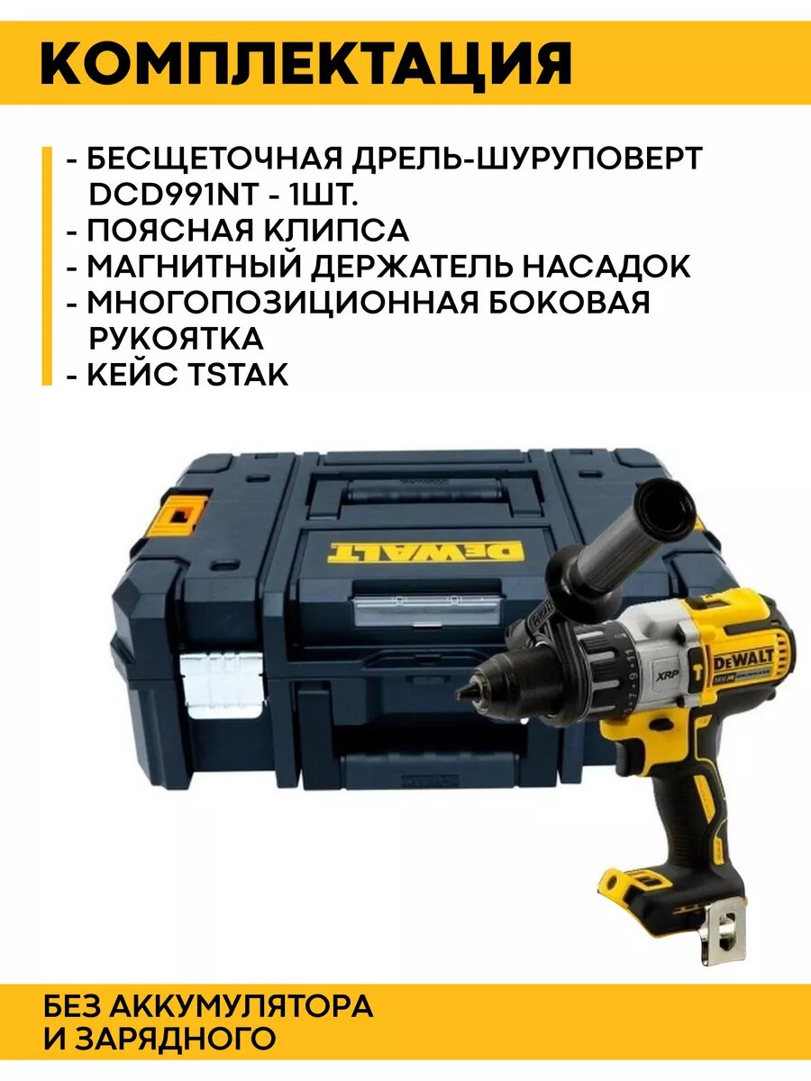 Купить Аккумуляторная бесщеточная дрель-шуруповерт DEWALT, 18 В, 2000 об/мин, без АКБ и ЗУ в кейсе TSTAK, DCD991NT
