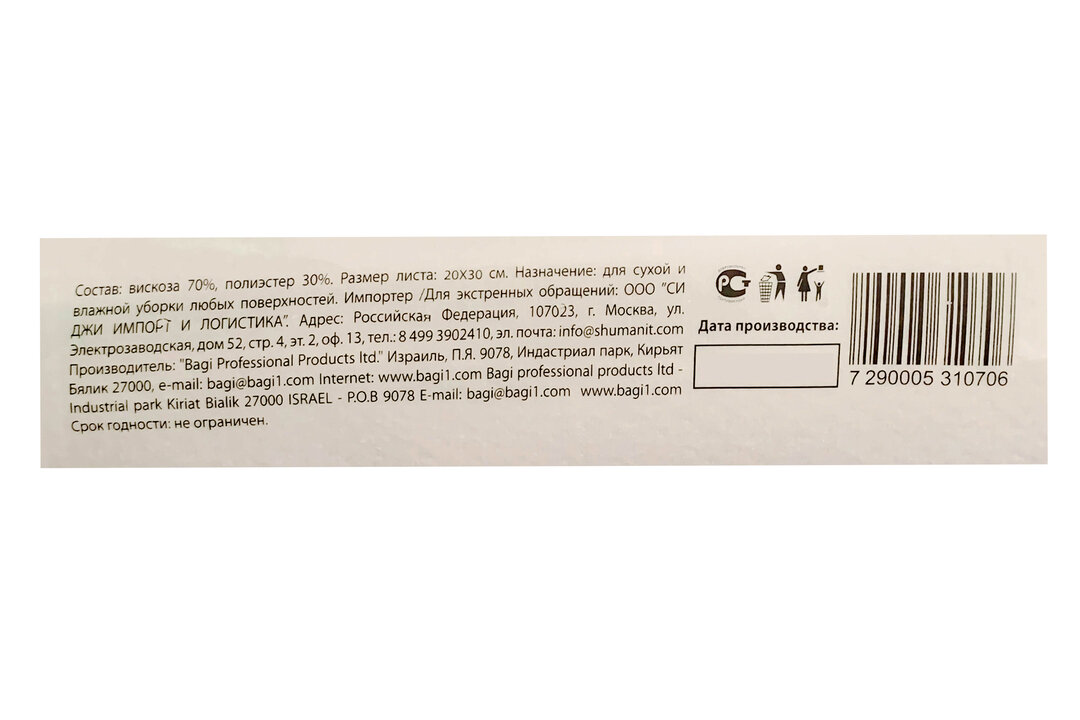 Bagi Чудо-тряпка анти ворсинки. Салфетки в рулоне для уборки, 20х30 см, 70 листов