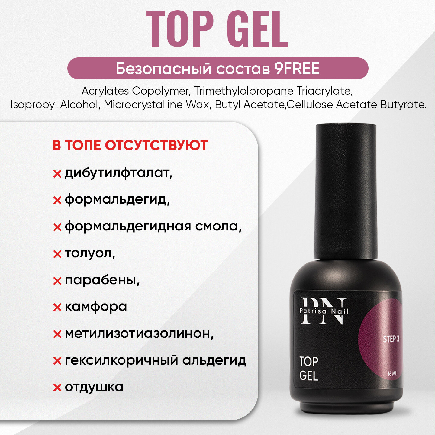 Купить Топ для ногтей глянцевый Patrisa Nail Top Gel без липкого слоя, 16 мл