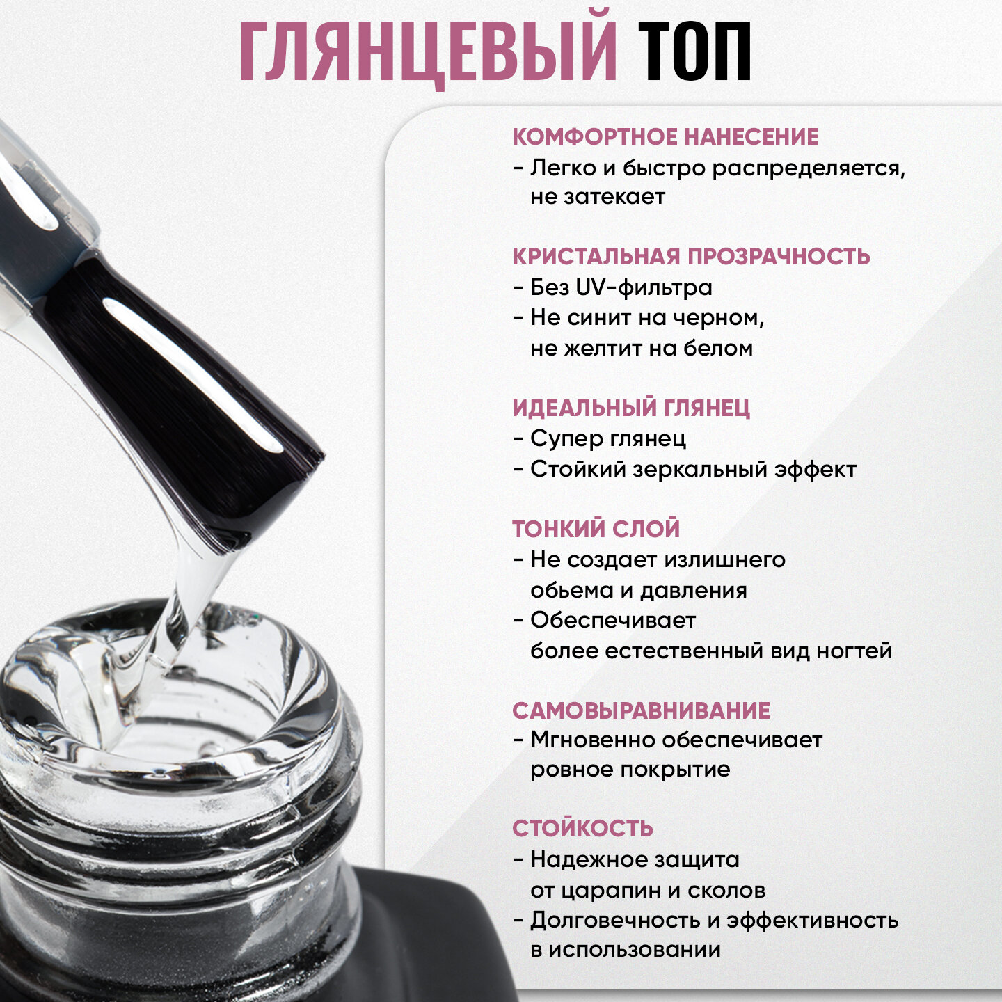 Топ для ногтей глянцевый Patrisa Nail Top Gel без липкого слоя, 50 мл