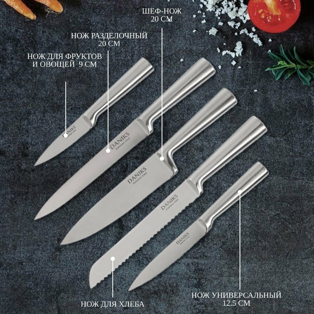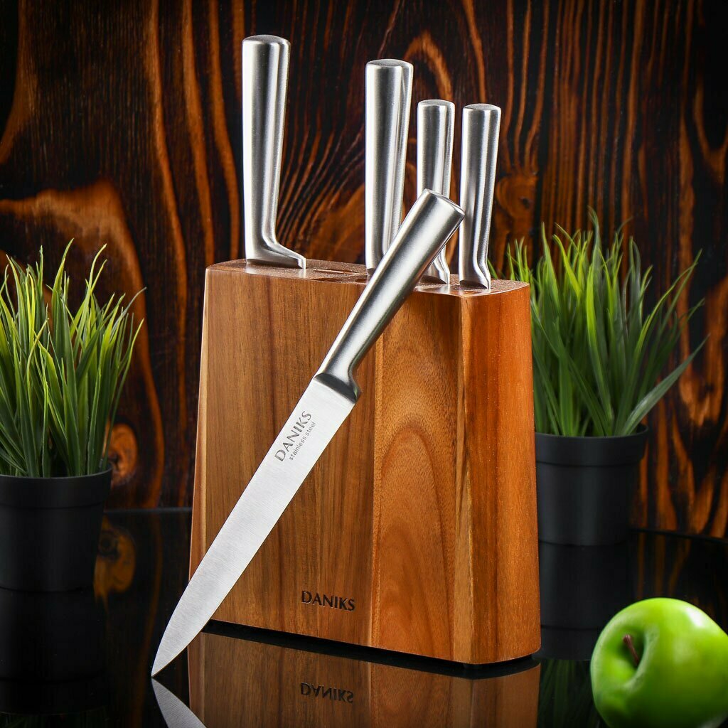 Набор Daniks 5 ножей, ножницы и мусат с подставкой