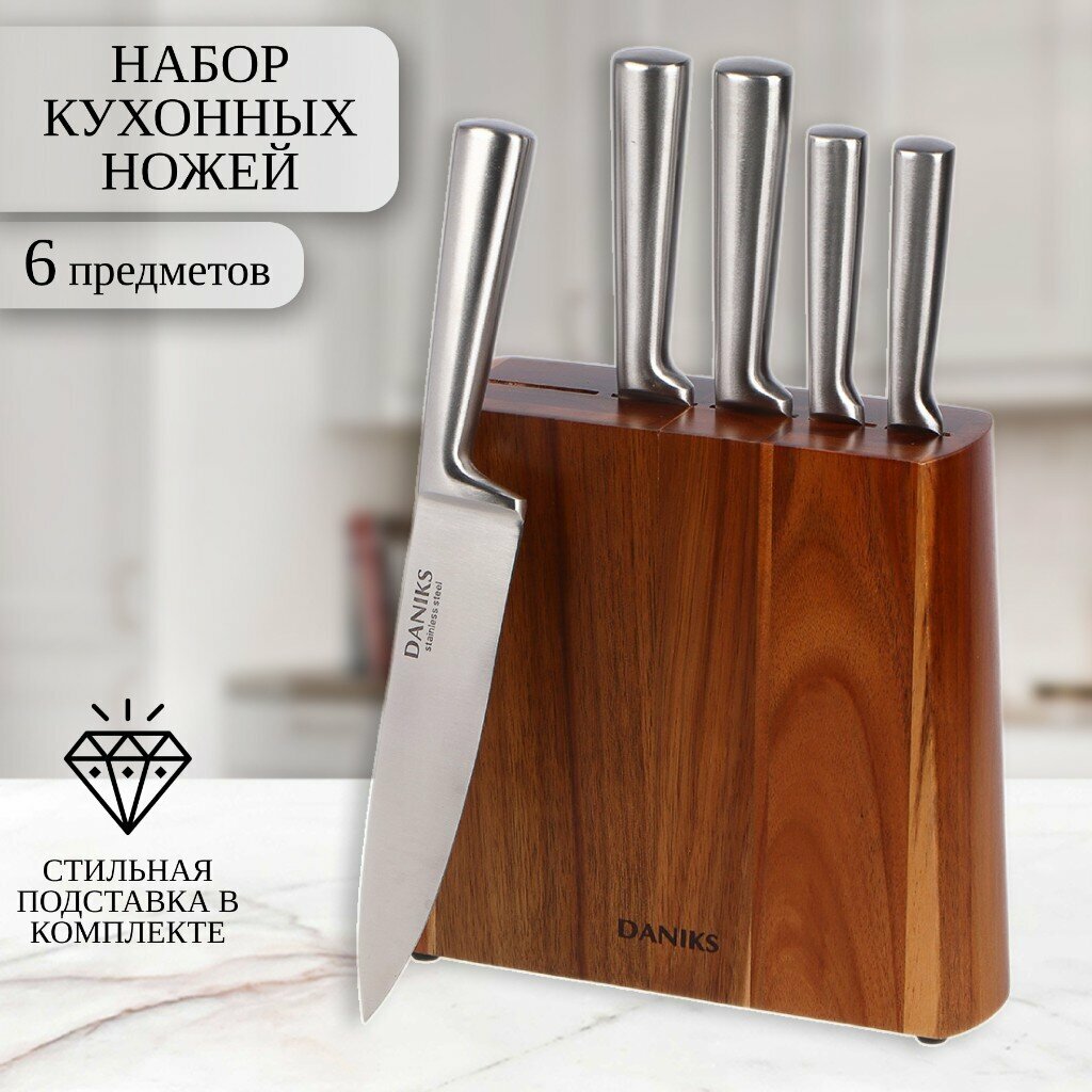 Набор кухонных ножей 6 предметов с подставкой, Daniks