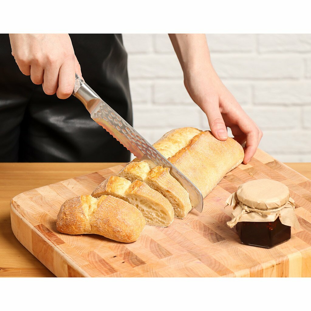 | Минусы: | Подставка несколько хлипкая, из необработанного дерева - если с первого раза не попасть ножом в отверстие, начинают скалываться волокна.