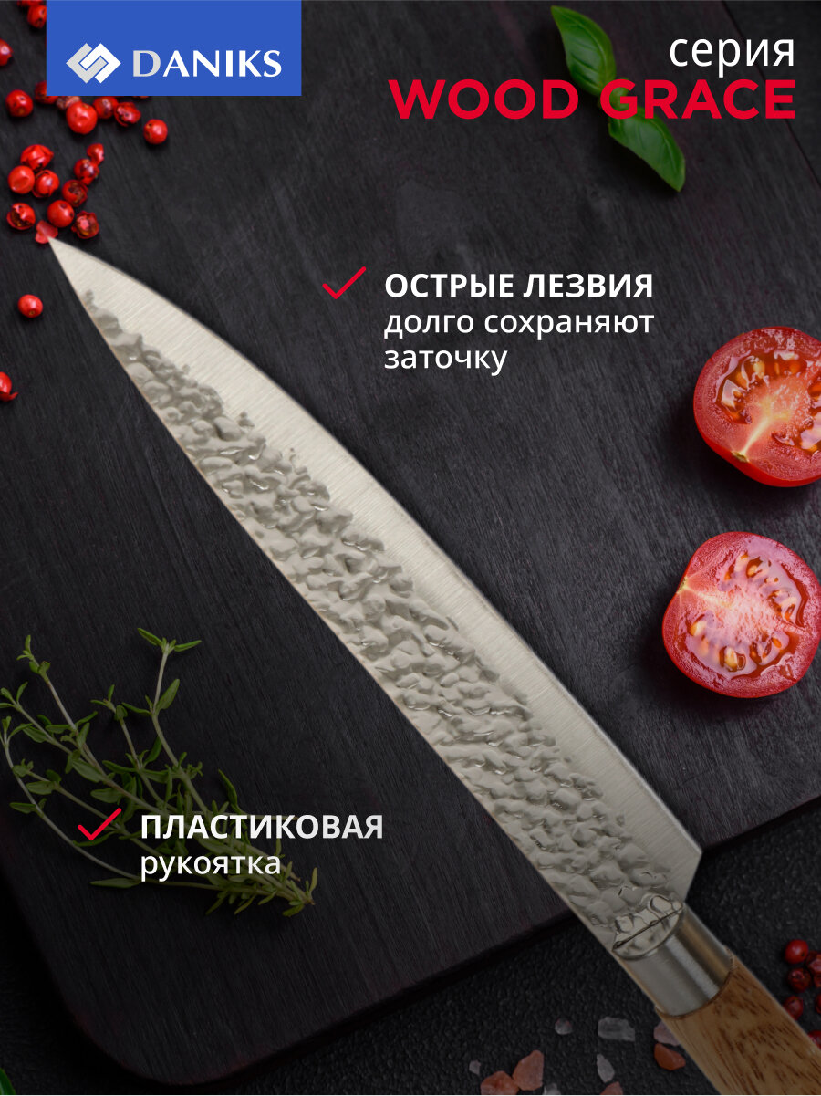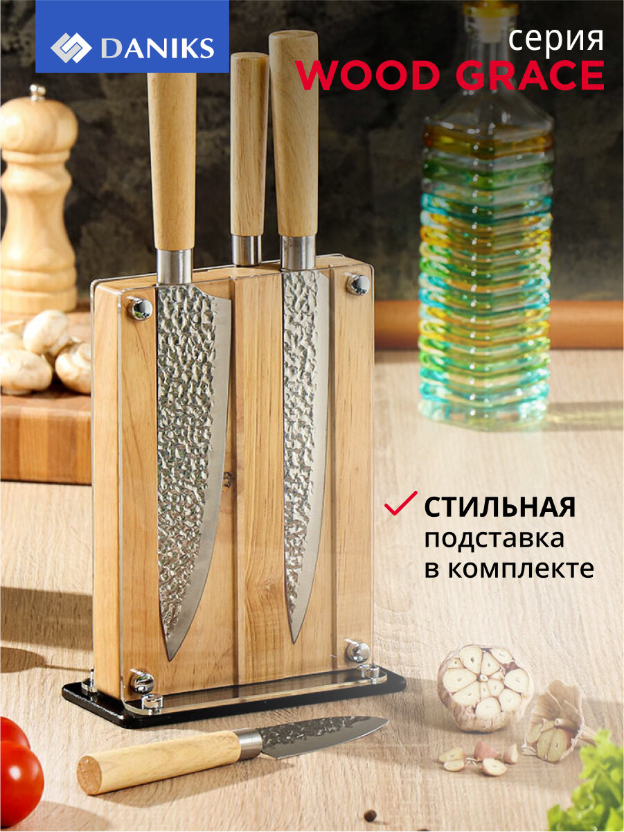 Купить Набор ножей 5 предметов, нерж.я сталь, рук. пластик, с подставк., акрил, Daniks, Вуд Грейс 388554