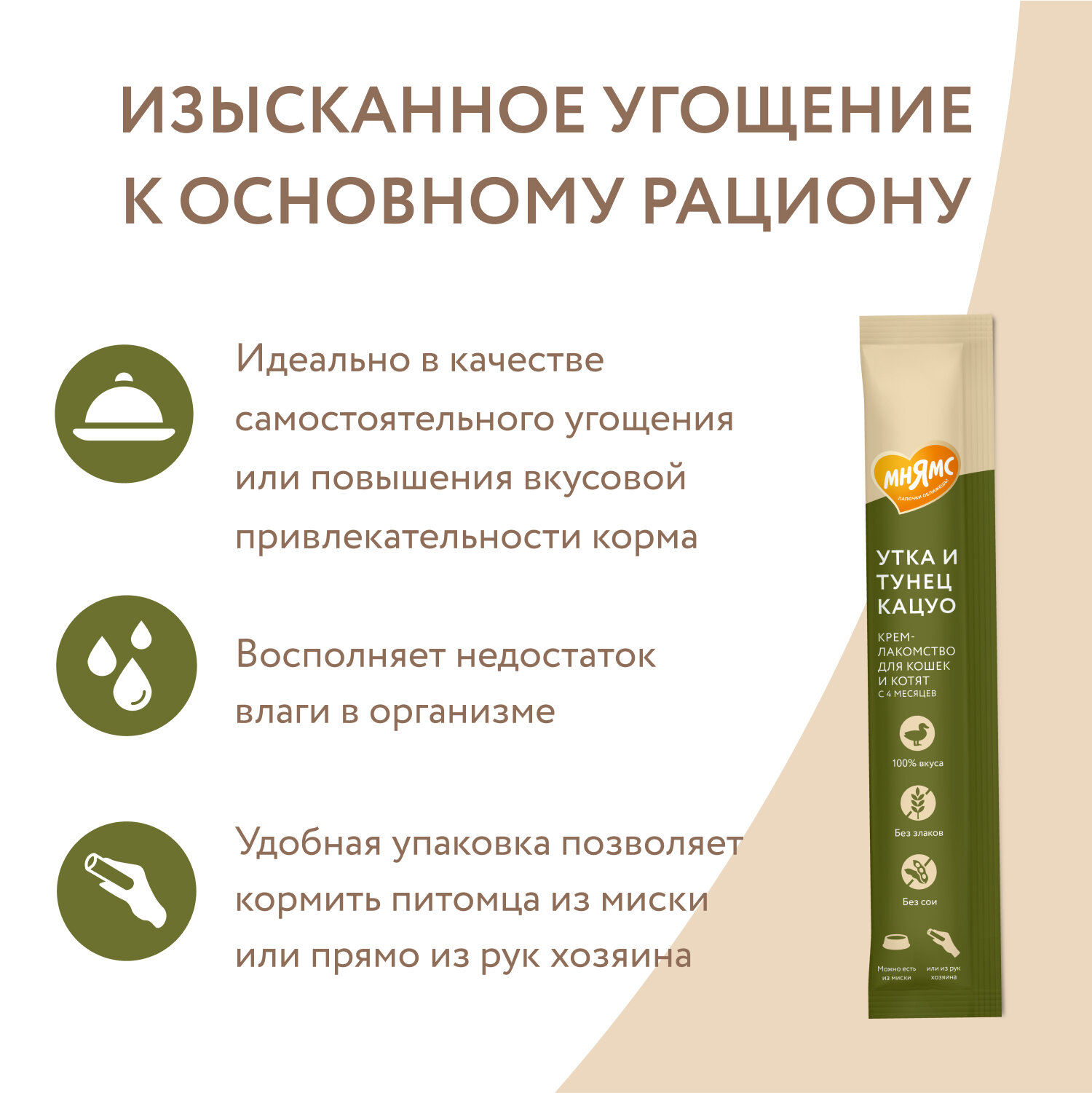 Купить Мнямс Крем-лакомство для кошек Утка и тунец Кацуо 15г (1 шт)
