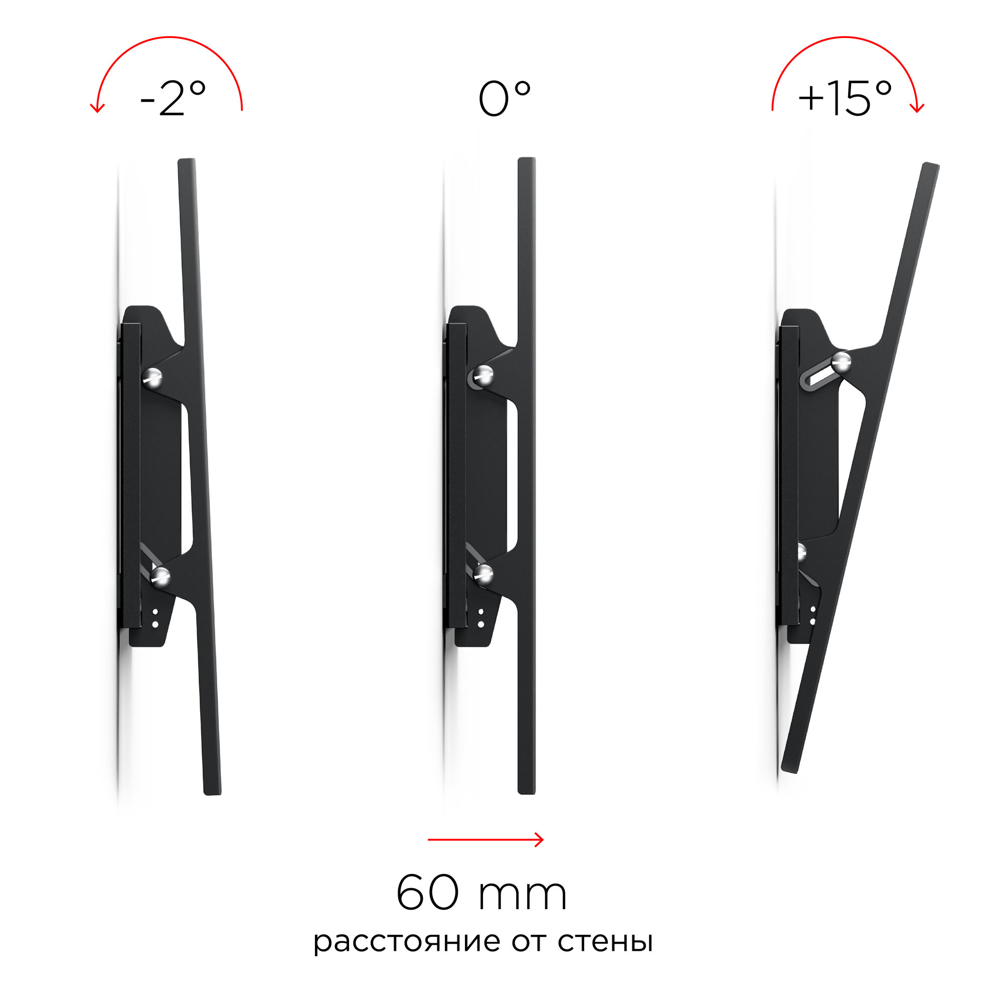 Кронштейн Holder LCD-T6606-B черный для ЖК ТВ 42-65" настенный от стены 60мм наклон -2°/+15° VESA до 60 кг