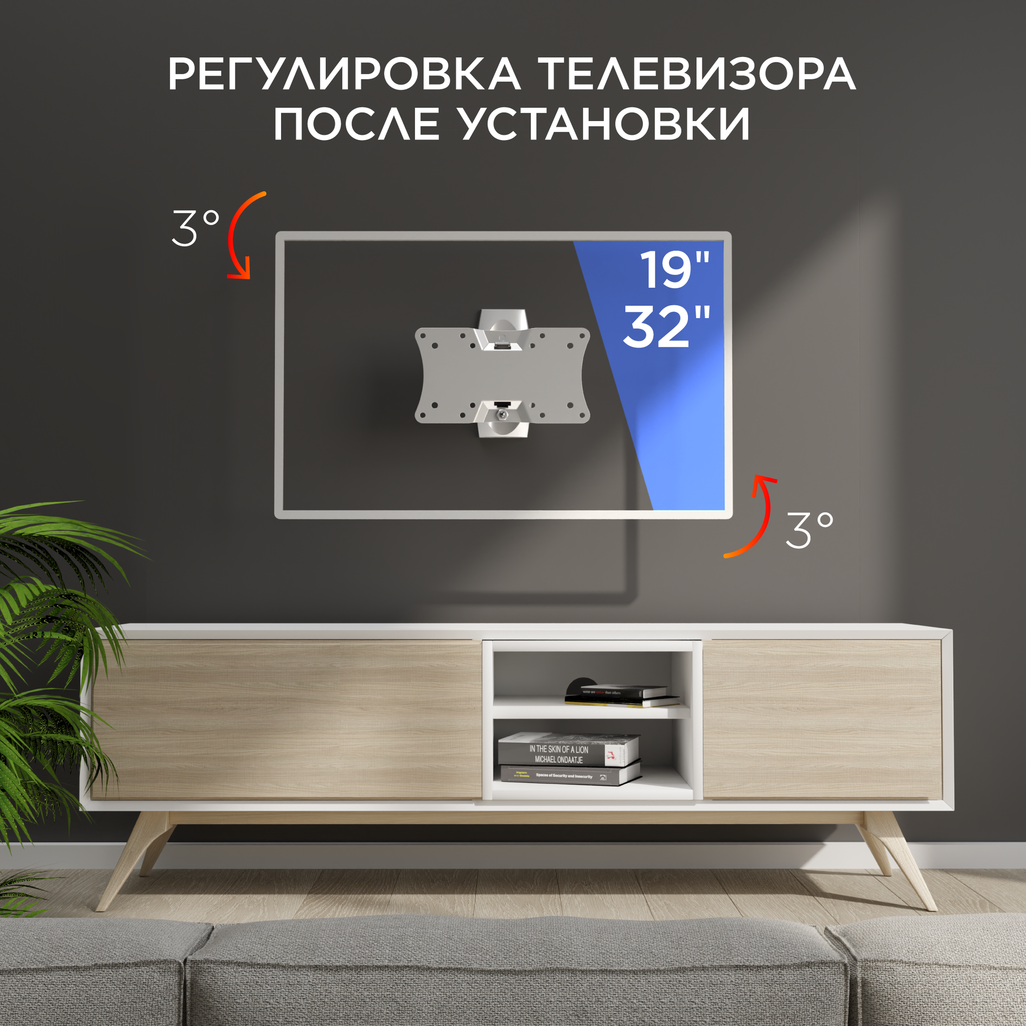 | Минусы: | - Тяжело закрутить болт для фиксации телевизора на кронштейн, т. к. сам телевизор при повороте упирается противоположной стороной в стену. Нужна угловая отвертка или очень короткая.