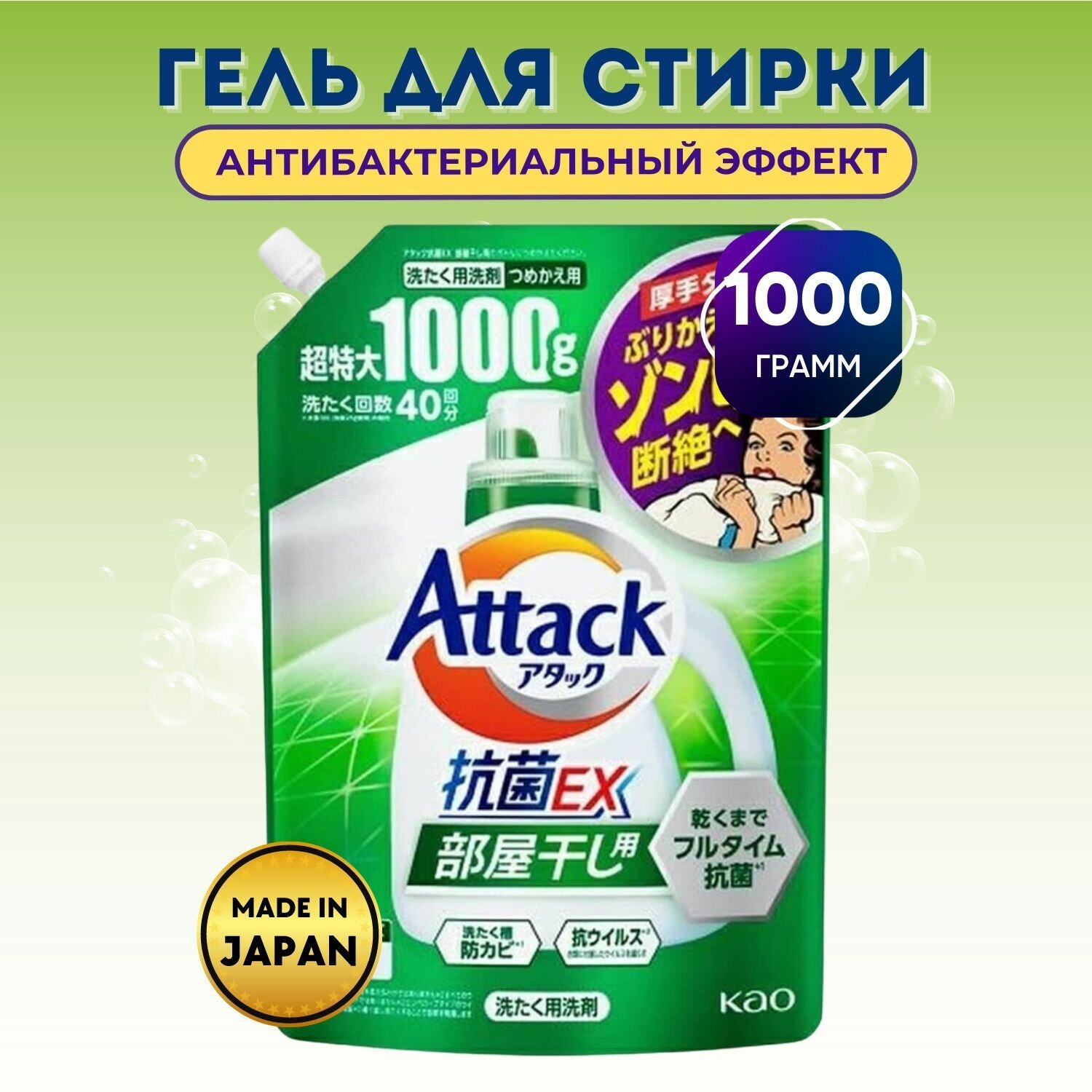 Купить KAO Attack Жидкое средство для стирки белья с антибактериальным эффектом и сушки в помещении сменная упаковка 1000 гр
