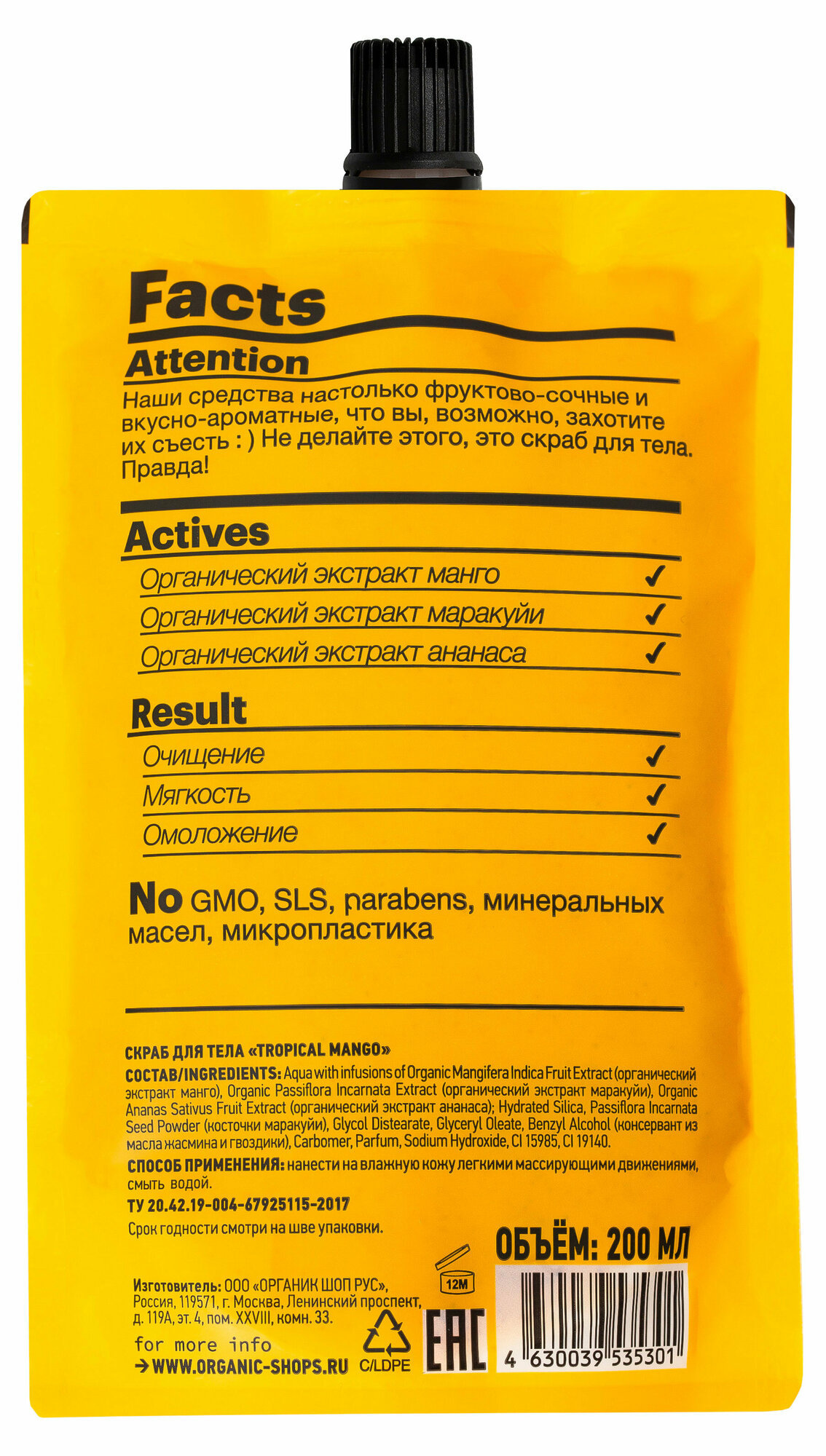 Купить Скраб для тела Organic Shop Home Made tropical mango, 200мл