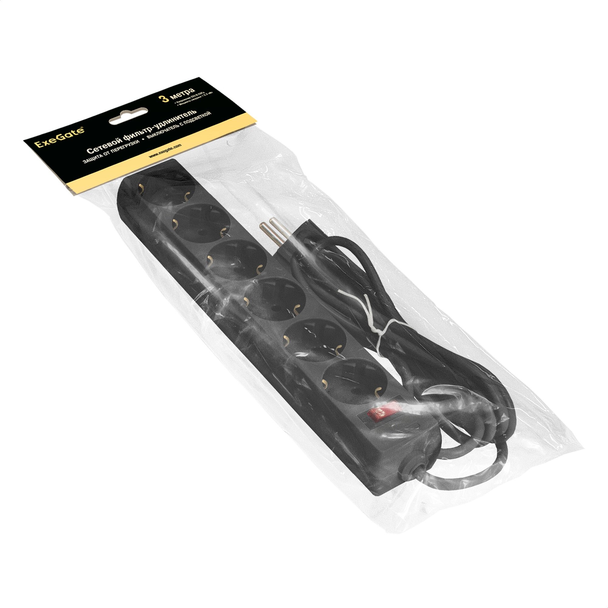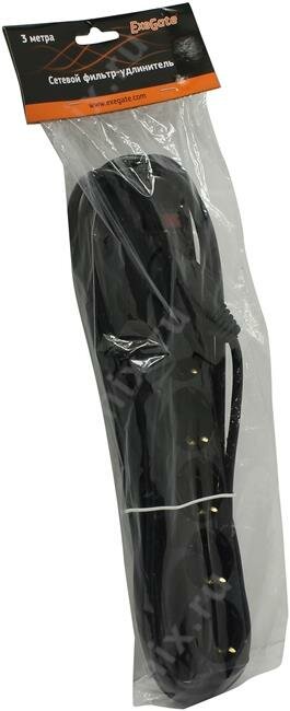 Сетевой фильтр ExeGate EX119393RUS SP-6-3B (6 розеток, 3м, евровилка, черный)
