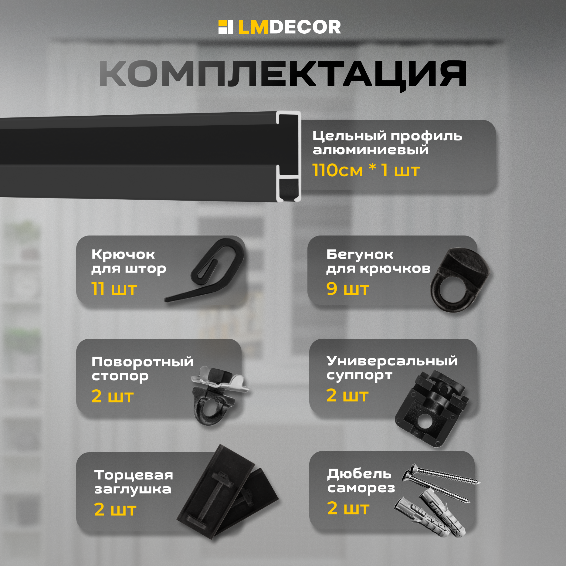 СохранитьКарниз для штор D2 алюминиевый однорядный потолочный 110 см Черный LM DECOR интересное: