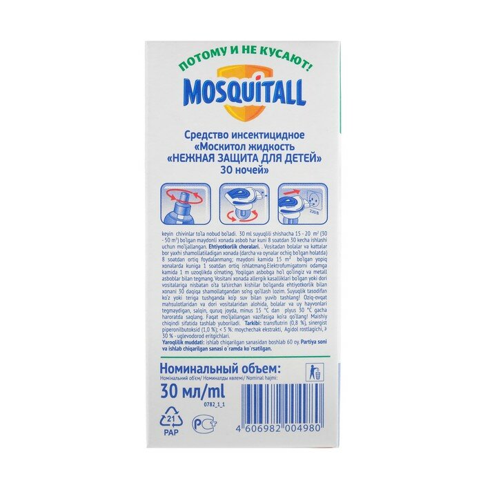 Ниже Вы можете прочитать отзывы на Mosquitall "Нежная защита для детей" Жидкость от комаров . 30 ночей",, 30 мл, ознакомится с подробными характеристиками, посмотреть интересные обзоры и фотографии на Mosquitall "Нежная защита для детей" Жидкость от комаров . 30 ночей",, 30 мл.