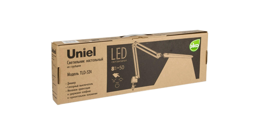 Типы/Настольные лампы/На струбцине Uniel TLD-524 Black/8W/Светильник настольный на струбцине/LED/500Lm/4500K/Dimmer/Цвет-черный