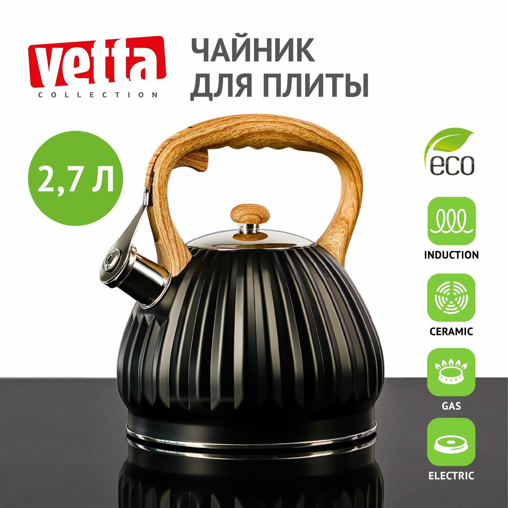 Купить Чайник со свистком 2,7 л для плиты VETTA "Винзен", нержавеющая сталь, черный, индукция