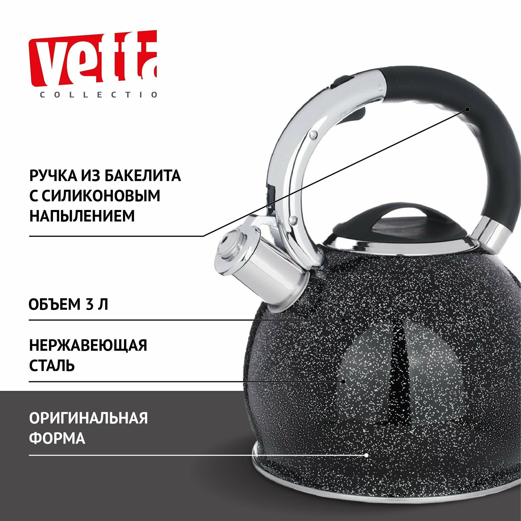 Vetta Чайник RWK-061-2.5L 2.5 л, черный/серебристый