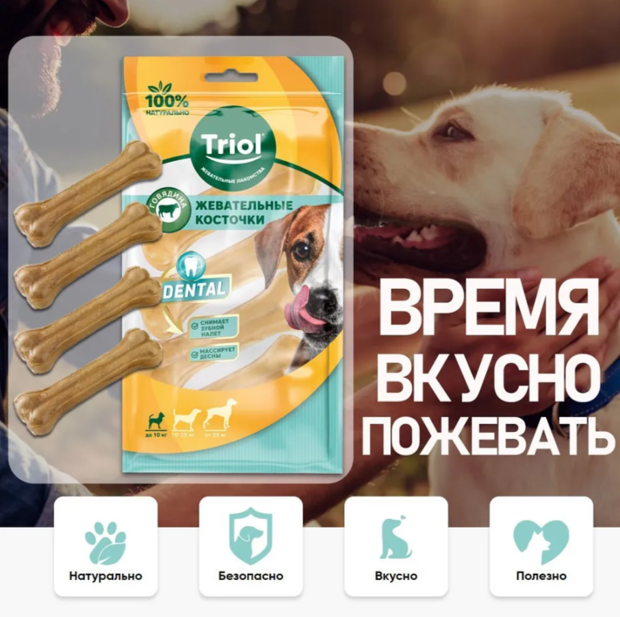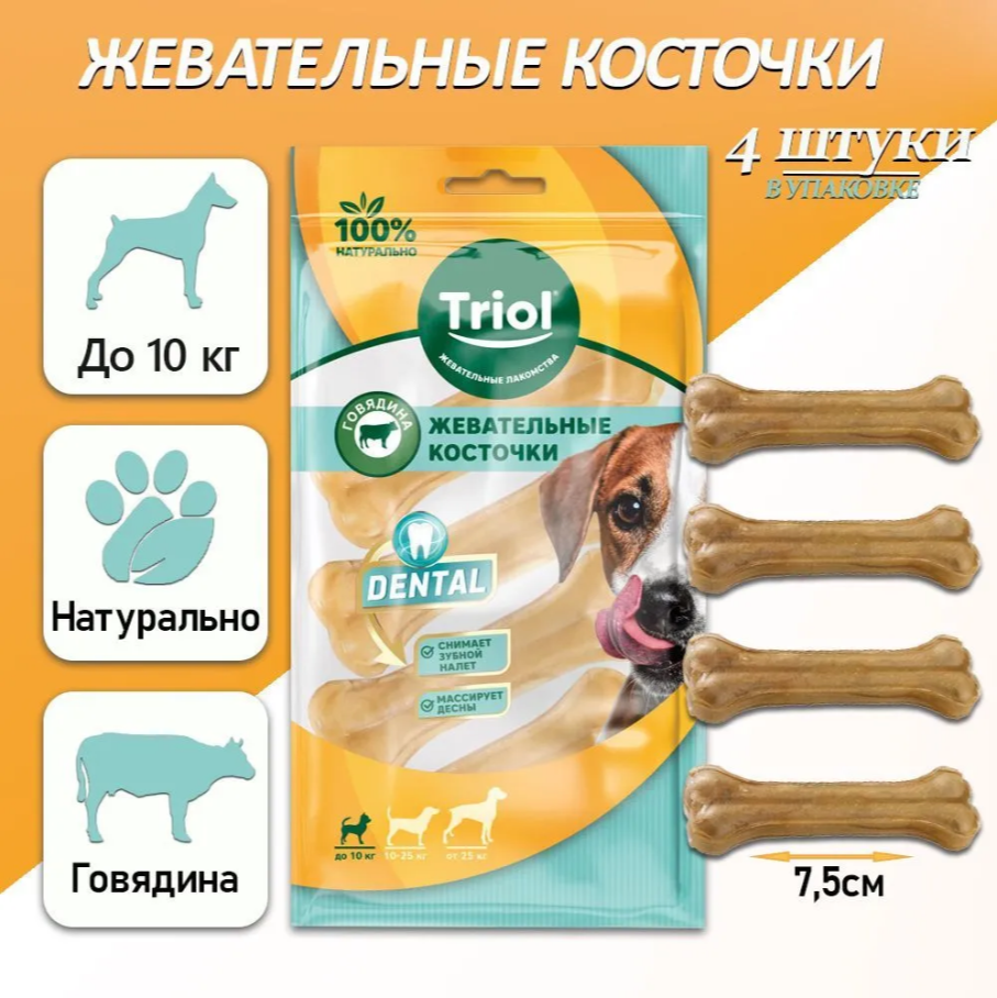 Косточка жевательная Triol DENTAL, 7,5 см, 20-25 г, упаковка 4 шт