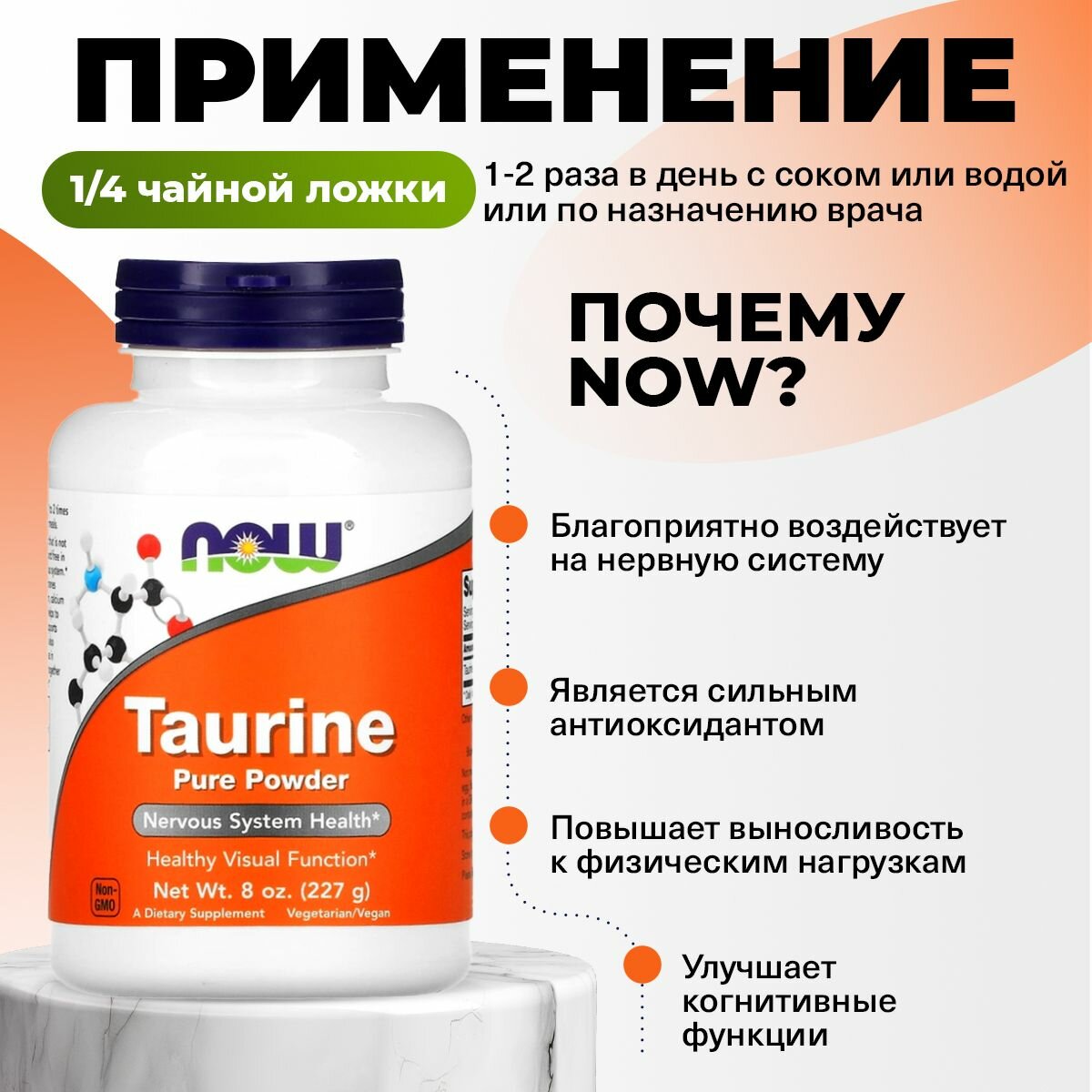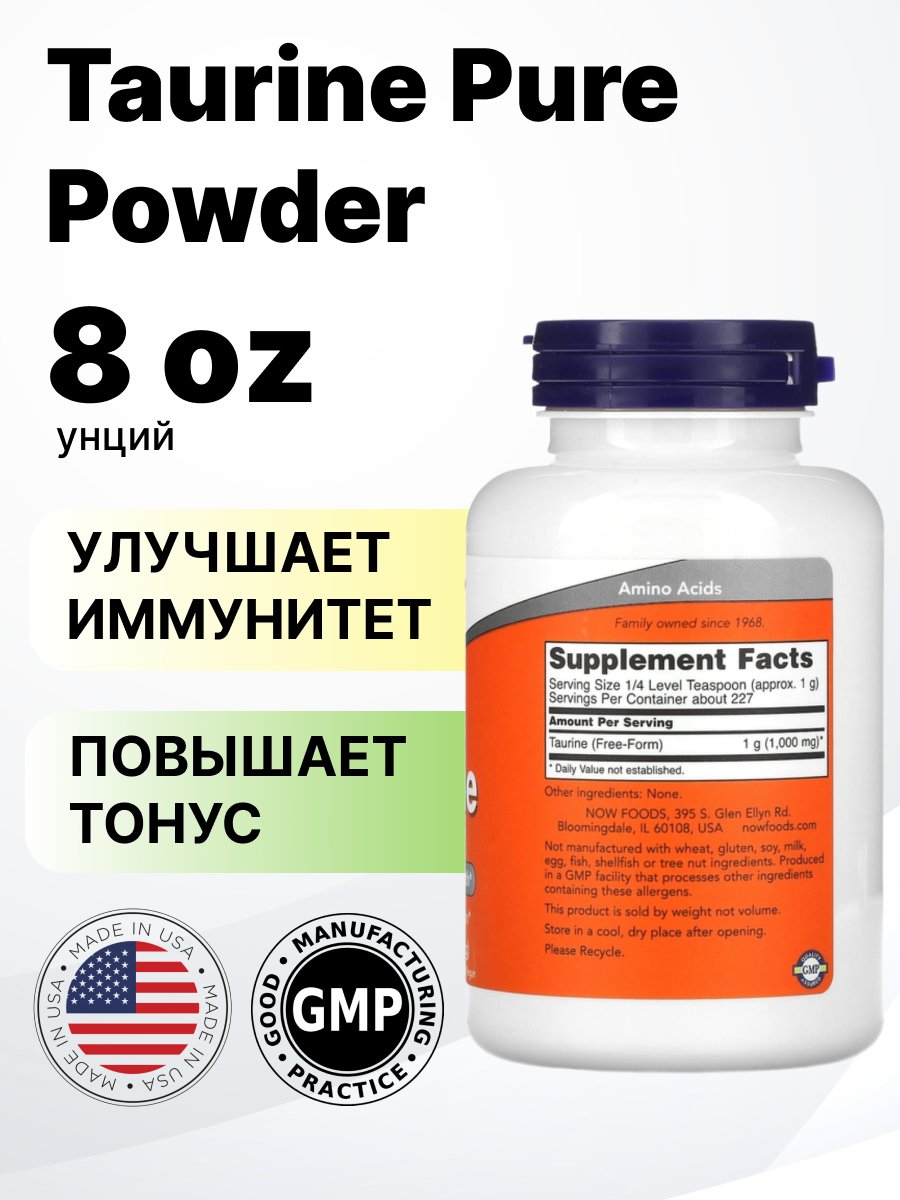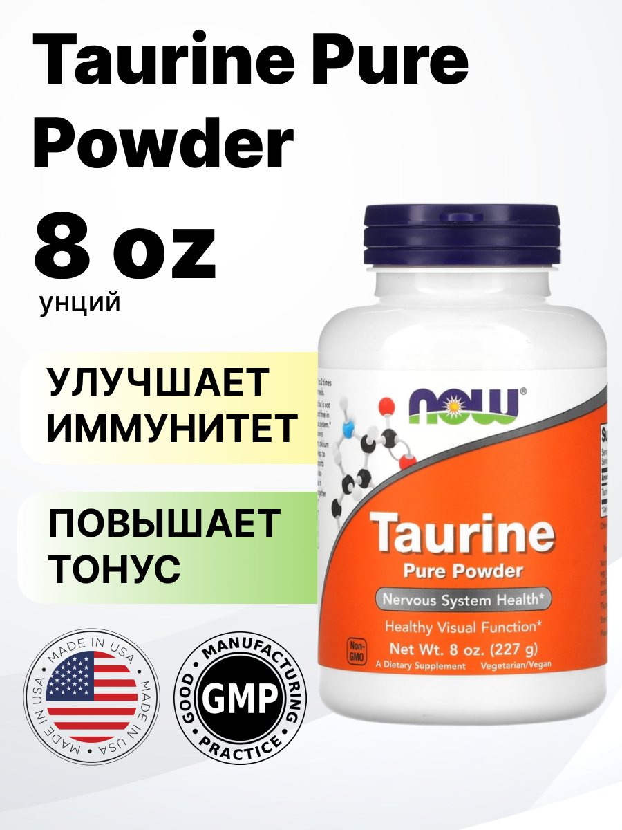 Now Foods Taurine Pure Powder 227 гр (без вкуса) интересное: