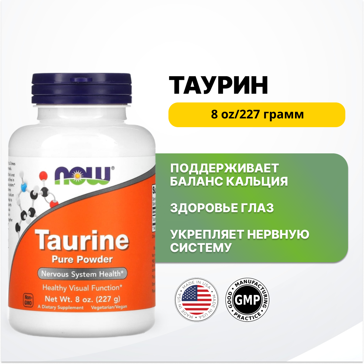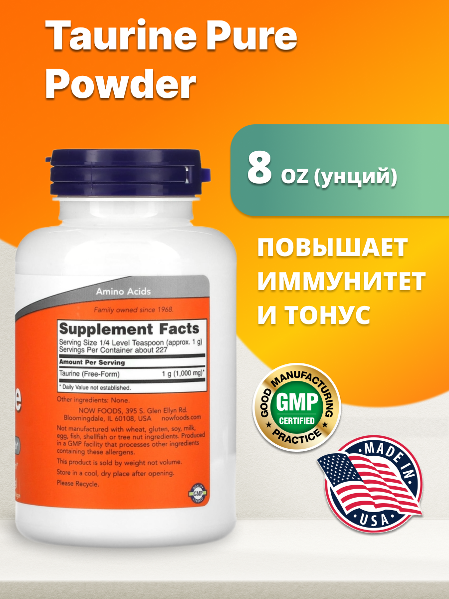 NOW Foods Taurine -Таурин, чистый порошок 227 грамм