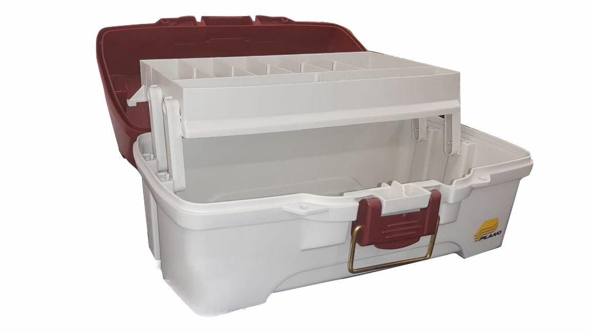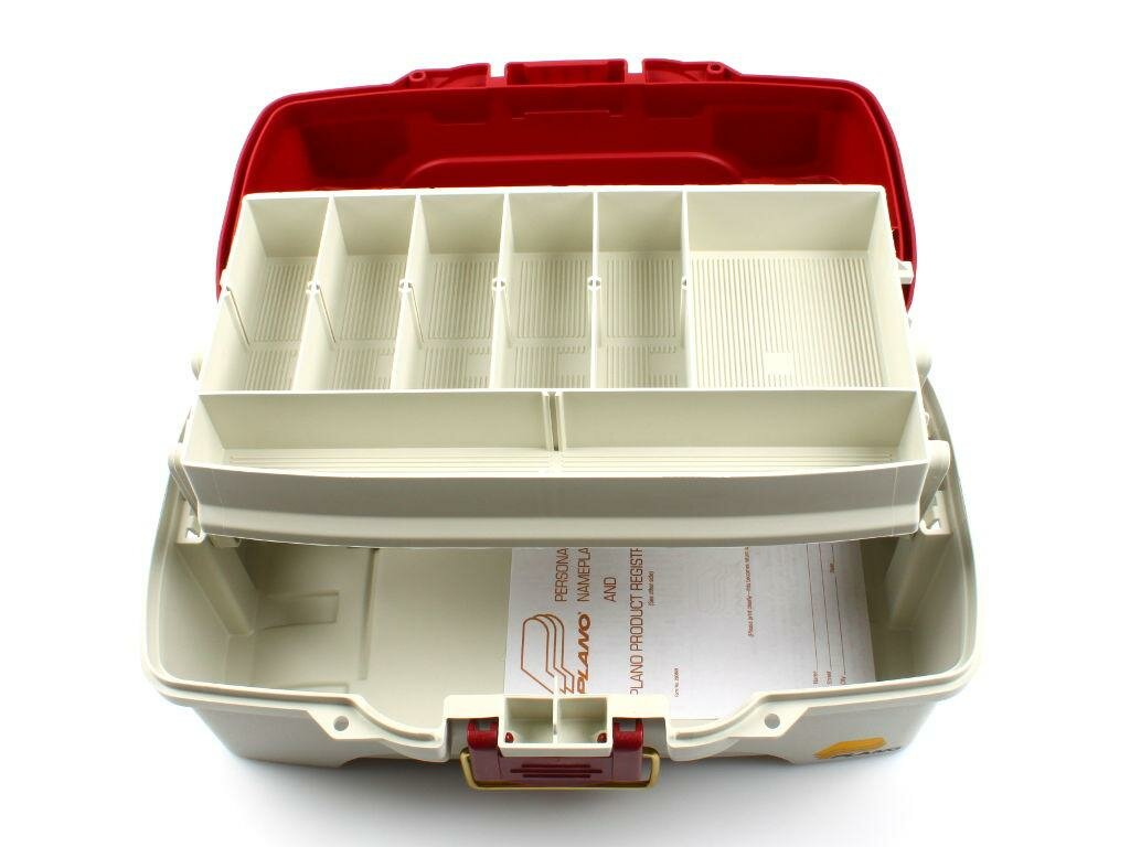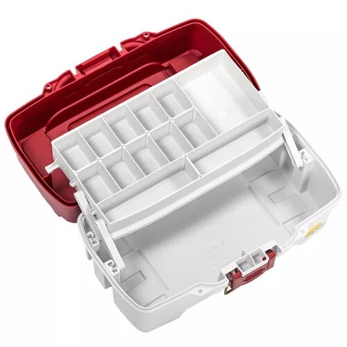 Купить Ящик рыболовный Plano для снастей с 1-уровневой системой хранения и 2 отделениями на крышке красный/белый