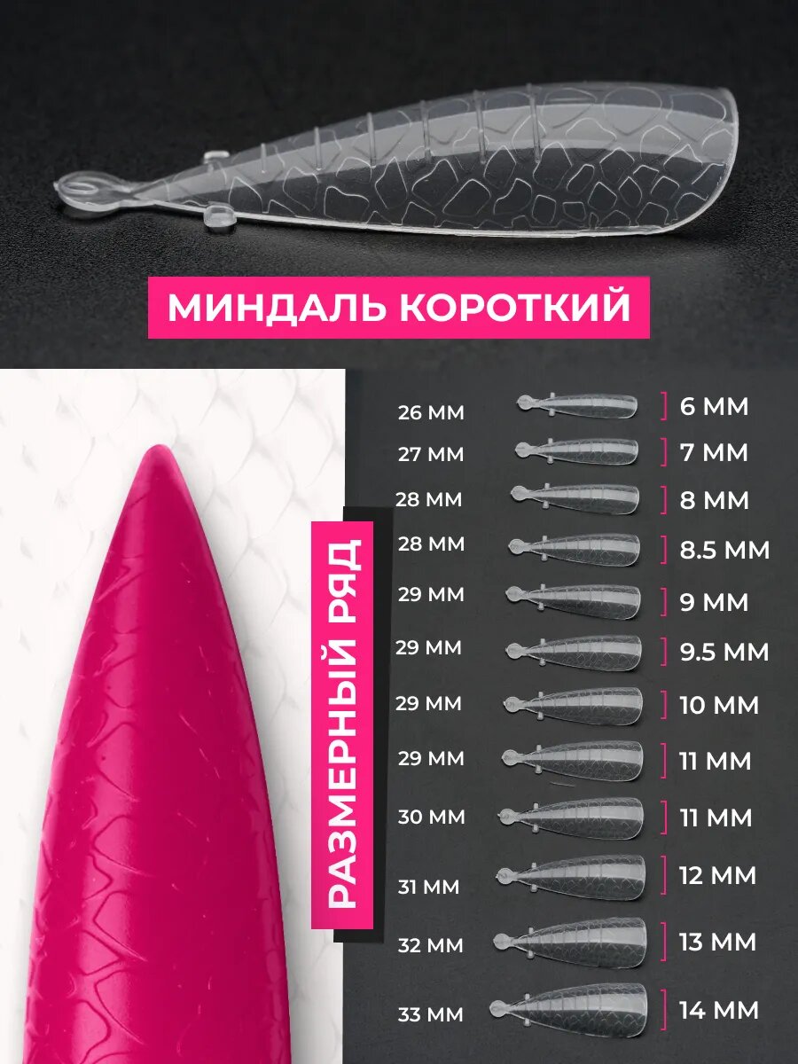 Верхние формы для наращивания и моделирования ногтей с текстурой кожи змеи эластичные многоразовые с разметкой 5 в 1, 120 шт от Pinkberry интересное: