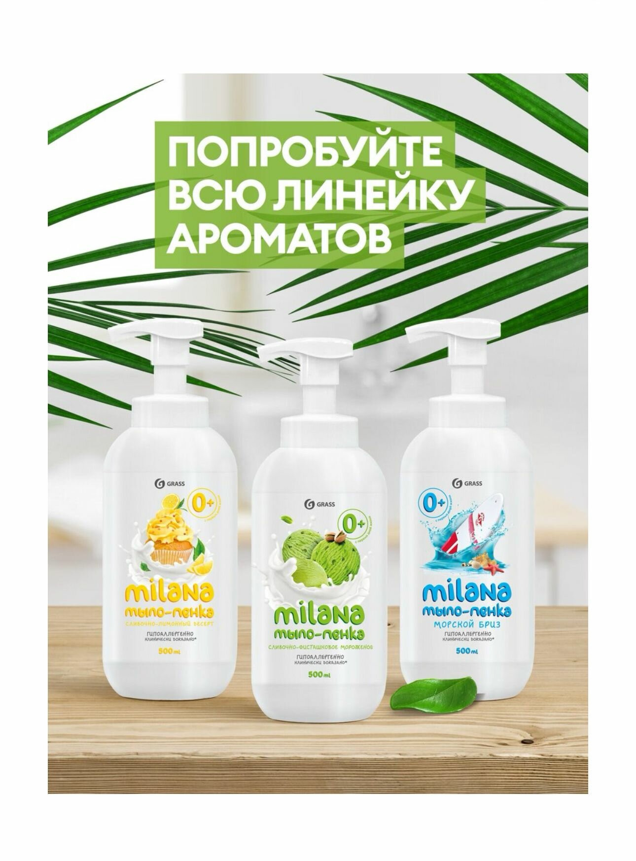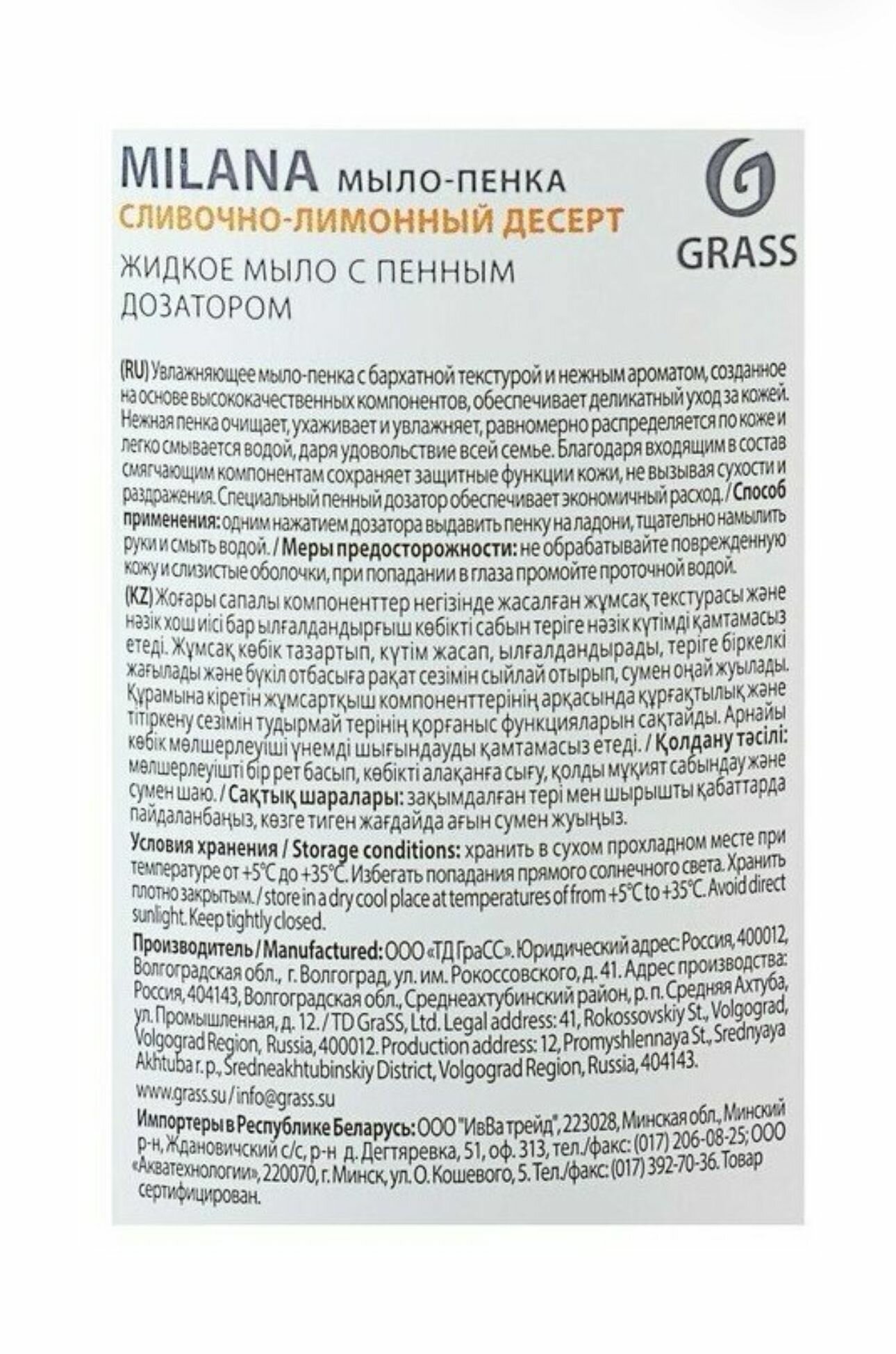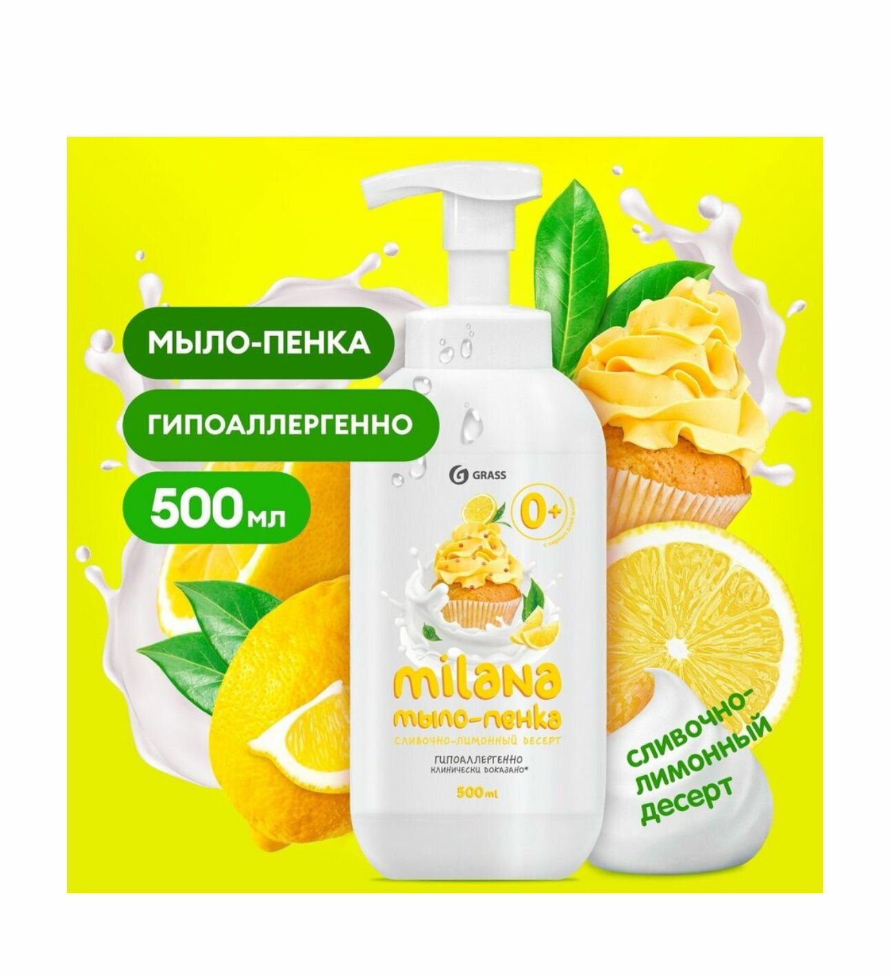 Grass Жидкое мыло-пенка, Milana сливочно-лимонный десерт, 500 мл