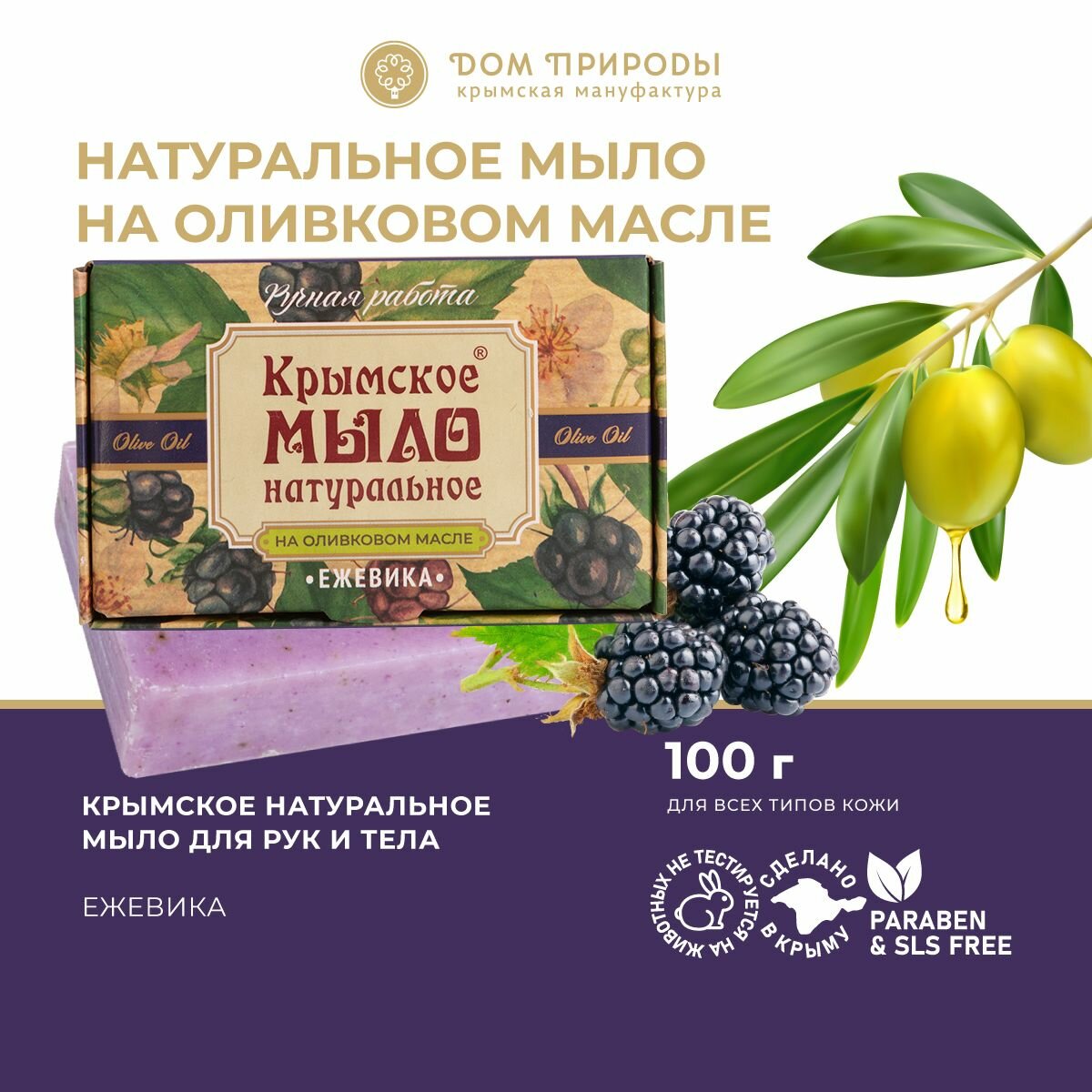 Мыло крымское на оливковом масле Ежевика | Дом Природы (100г)