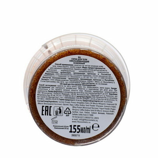 Все здравствуйте. Сегодня я расскажу вам про замечательный скраб для тела от фитокосметик кофейный, кстати говоря. По консистенции он как какое-то тягучее вещество. Если добавить чуток ч воды станет жидким. Очень много частичек, которые скрабируют кожу. Ощущение на коже божественное,она такая мягкая. Эффект в течении всего дня. А цена на него так вообще. Я заказывала на белорисе за 50 руб. Очень буджетный и здоровский скраб. Обязательно куплю ещё. Если отзыв был вам полезен, поставьте мне лайк. Вам не сложно, мне приятно. Недостатки: Из-за своей маленькой баночки не экономичен. Быстро расходуется,как и все скрабы в банках |