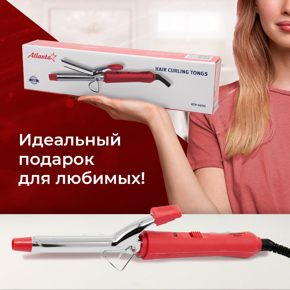 Щипцы для завивки Atlanta ATH-6646, красный