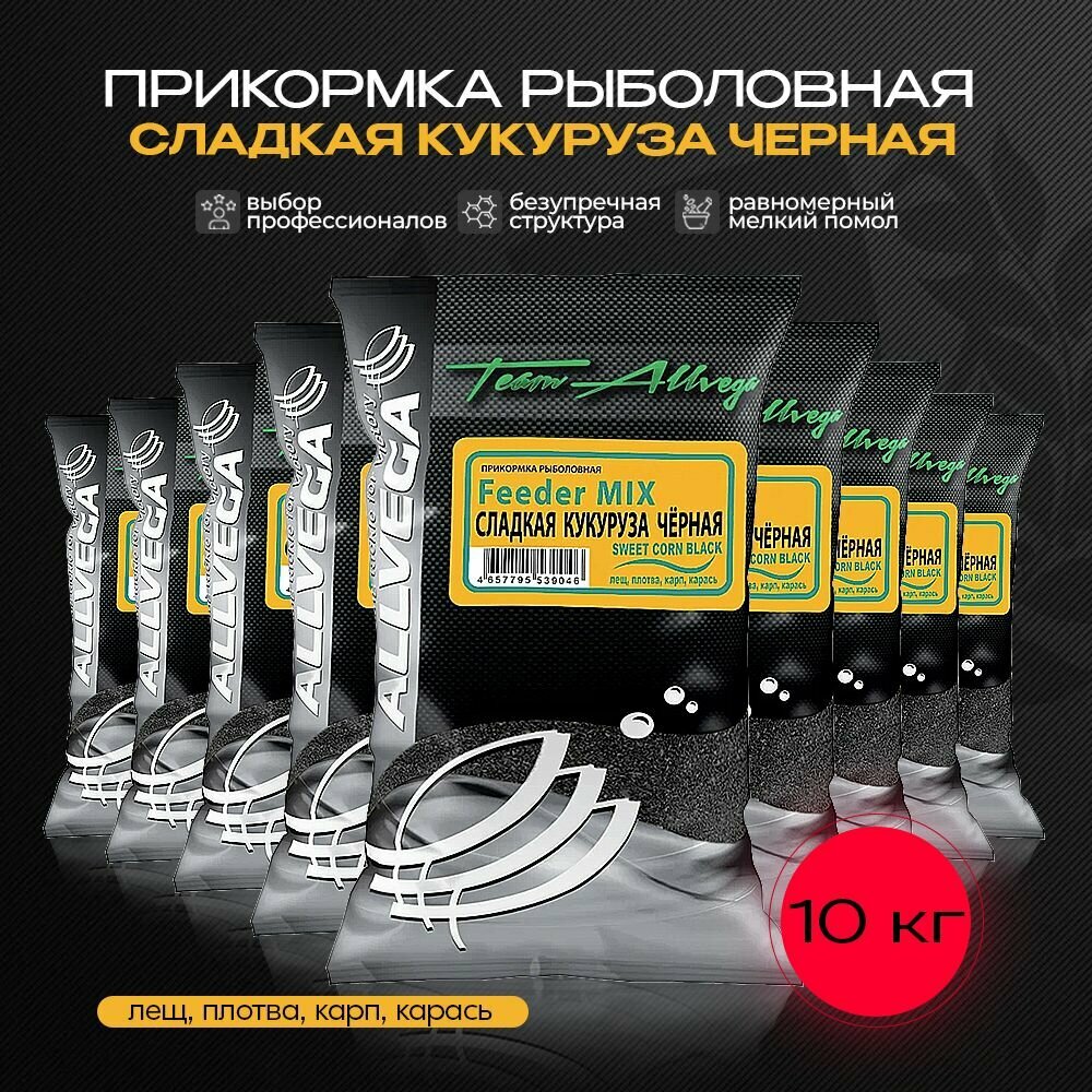 Купить Прикормка рыболовная ALLVEGA Team Allvega сладкая кукуруза черная 10 пакетов по 1кг