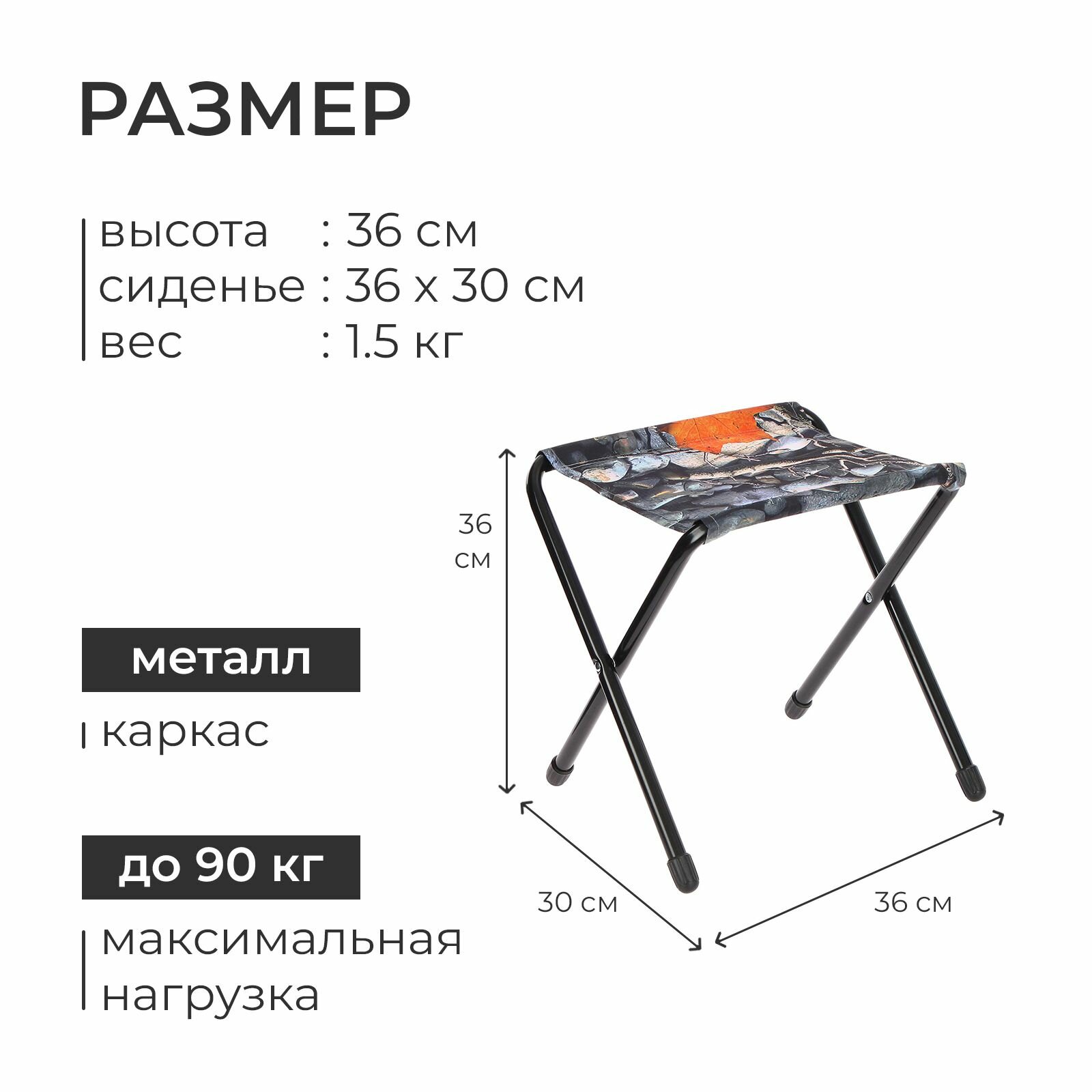 Стул дачный складной, 360 x 300 x 360 мм, с камнями и кленовыми листьями, ДС/4