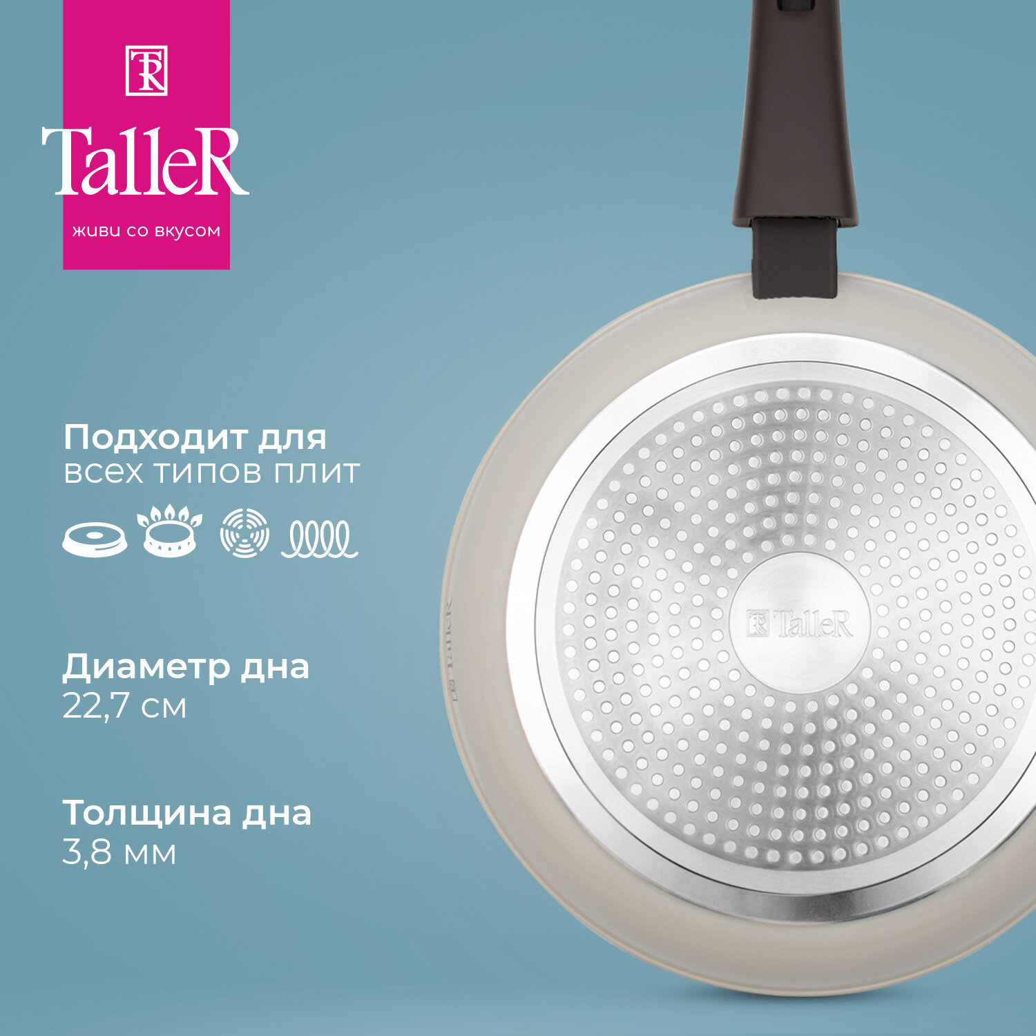 Сковорода TalleR TR-44021, 22 см, толщина дна 4,8 мм, внешний диаметр дна 14,5 см