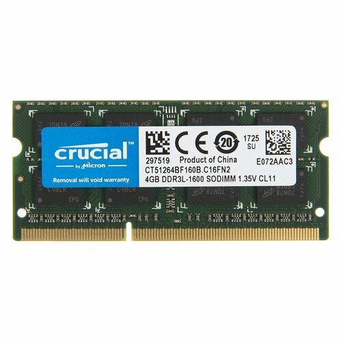 Оперативная память Crucial 4 ГБ DDR3L 1600 МГц SODIMM CL11 CT51264BF160B интересное: