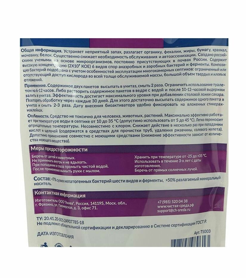 Чистая среда Биоактиваторы для септиков "Септик многокамерный", дой-пакет, 210 гр