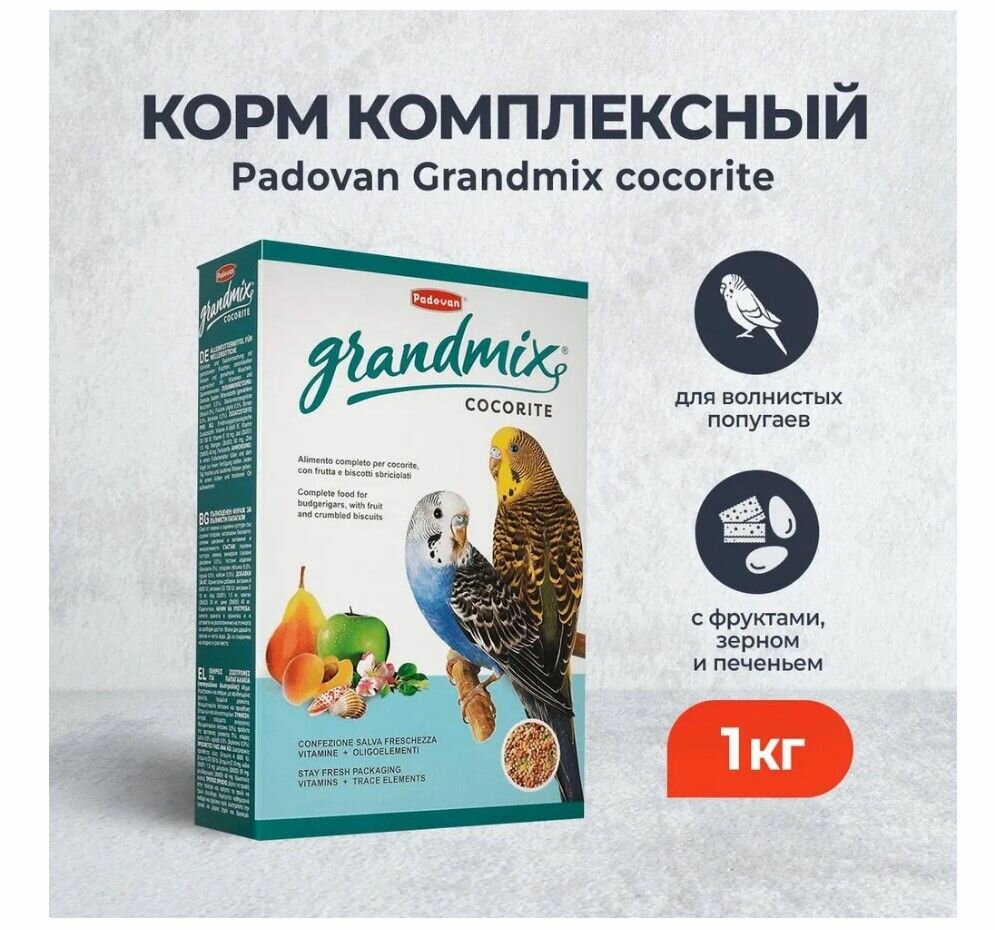 Купить Padovan Grandmix корм для волнистых попугаев Cocorite 1 кг