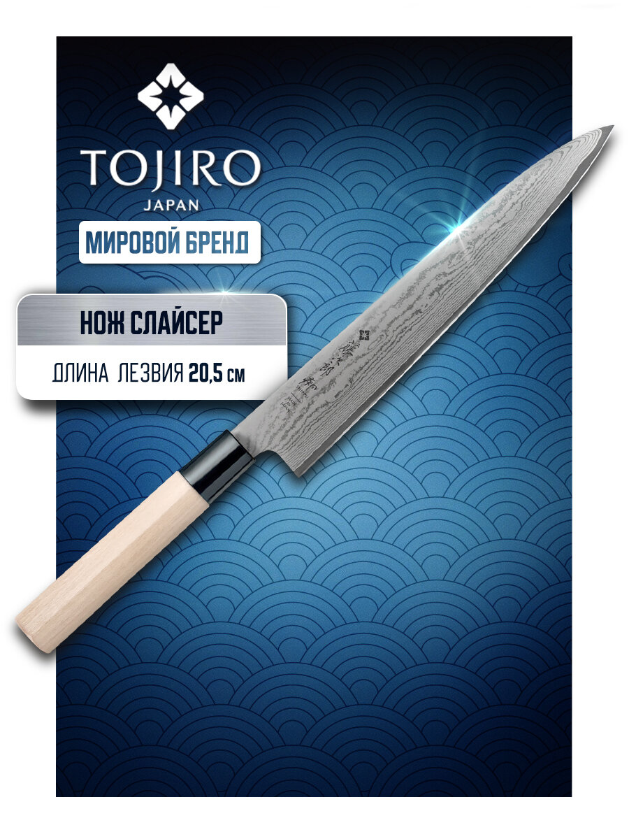 Кухонный Нож для тонкой нарезки филейный слайсер TOJIRO (FD-599), длина лезвия 21,0 см, дамасская сталь VG-10, 63 слоя рукоять дерево, Япония интересное: