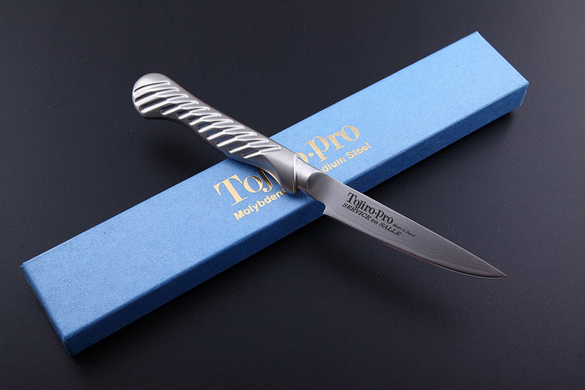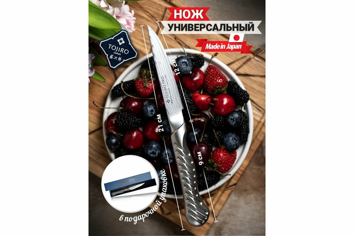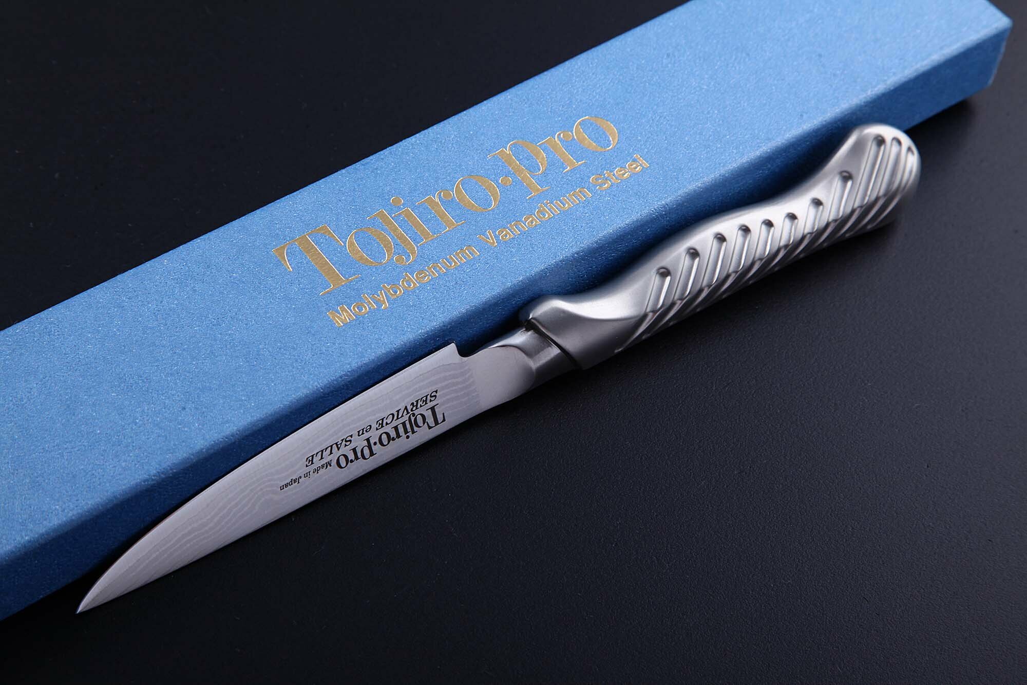 Нож Кухонный Универсальный TOJIRO (FD-701), длина лезвия 9,0 см, дамасская сталь VG-10, 37 слоев, рукоять сталь, Япония интересное: