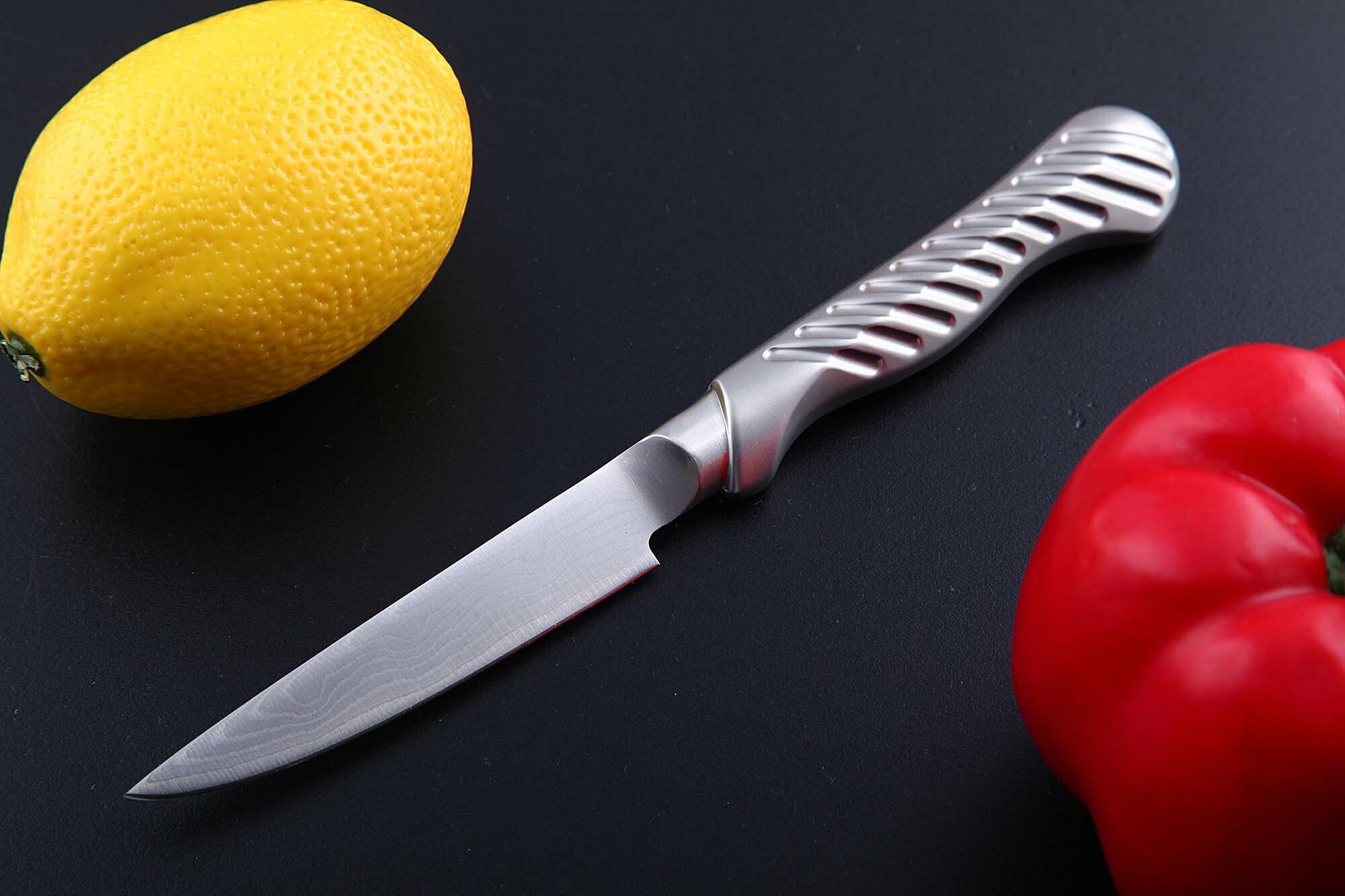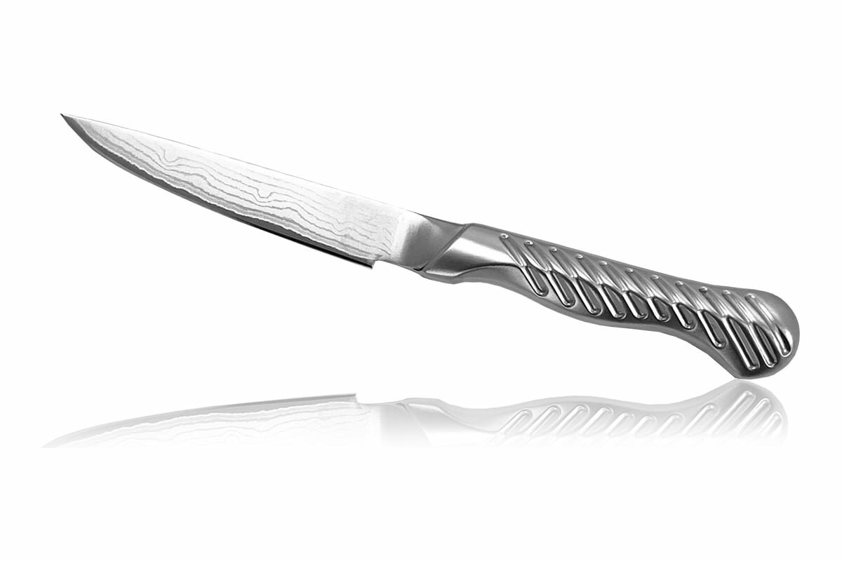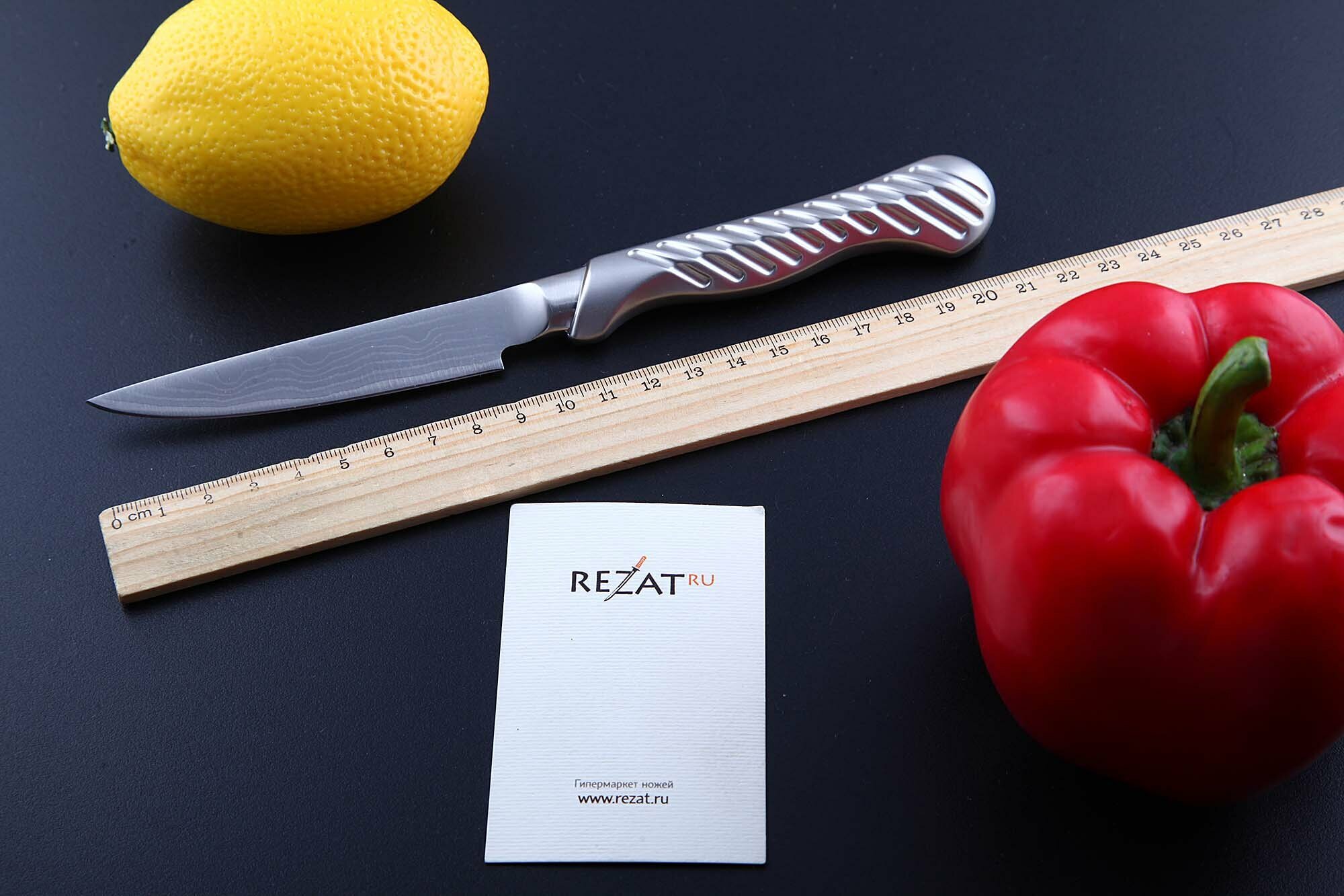 Нож Кухонный Универсальный TOJIRO (FD-701), длина лезвия 9,0 см, дамасская сталь VG-10, 37 слоев, рукоять сталь, Япония интересное: