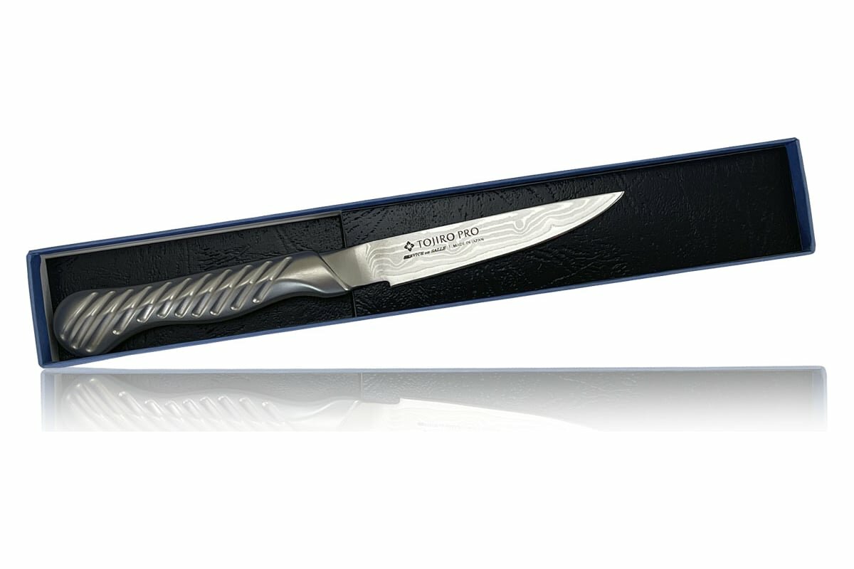 Купить Нож Кухонный Универсальный TOJIRO (FD-701), длина лезвия 9,0 см, дамасская сталь VG-10, 37 слоев, рукоять сталь, Япония