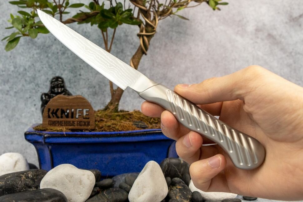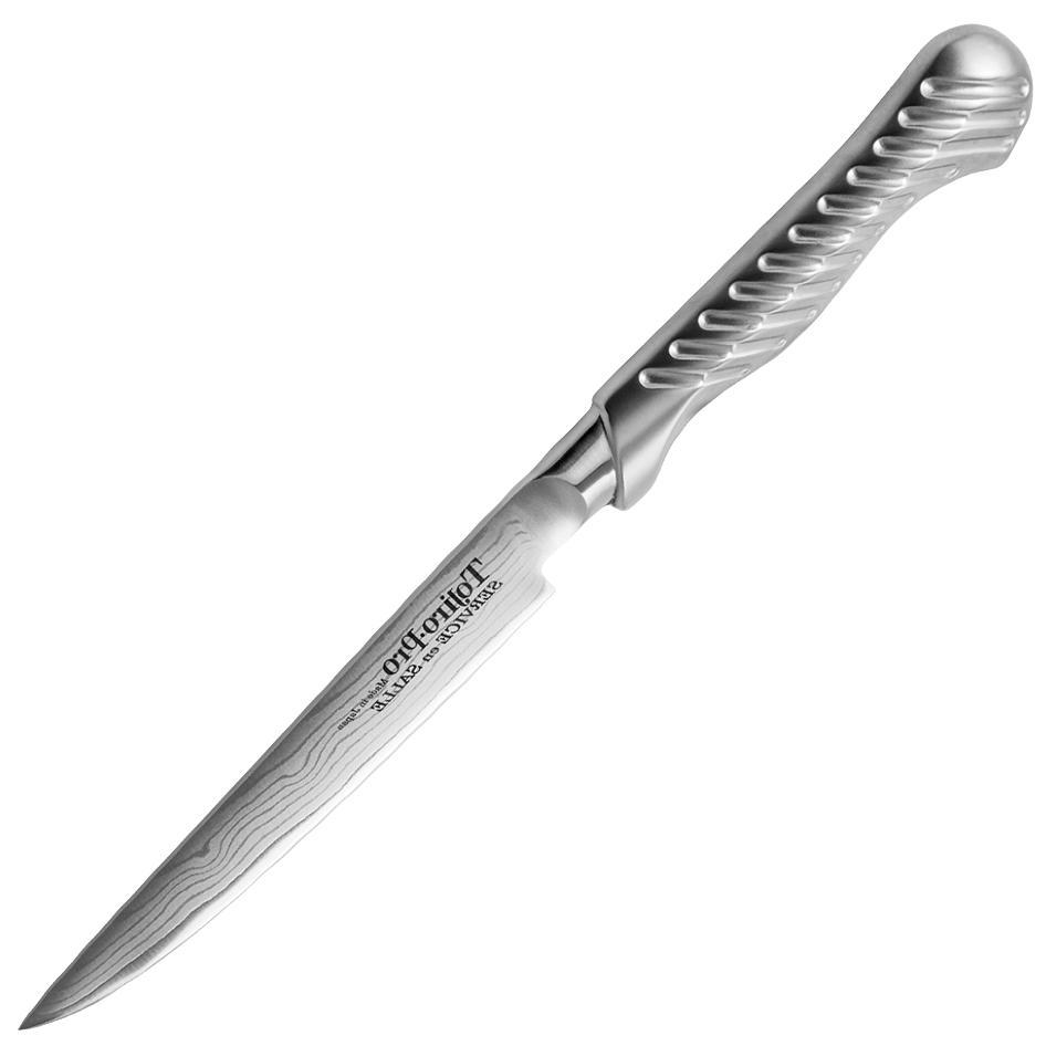 Нож Кухонный Универсальный TOJIRO (FD-702), длина лезвия 12,0 см, дамасская сталь VG-10, 37 слоев, рукоять сталь, Япония интересное: