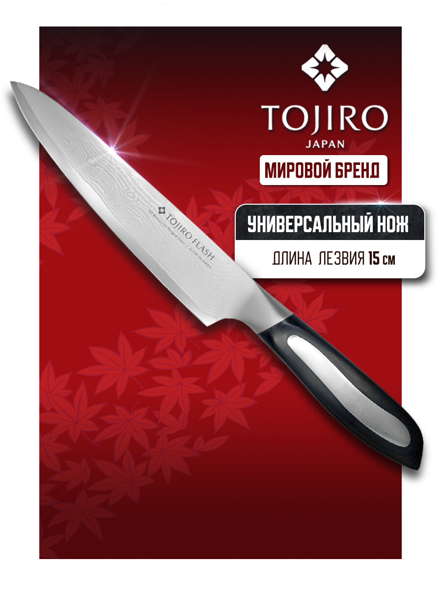 Tojiro Нож кухонный универсальный flash, длина лезвия 150 мм, сталь vg10, 63 слоя, рукоять микарта F . интересное: