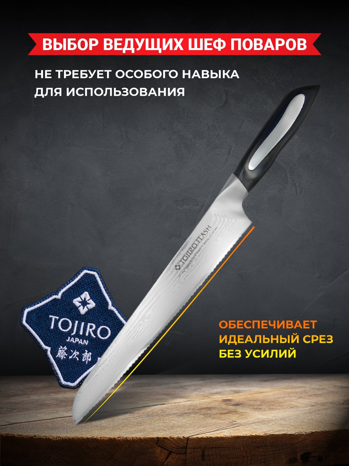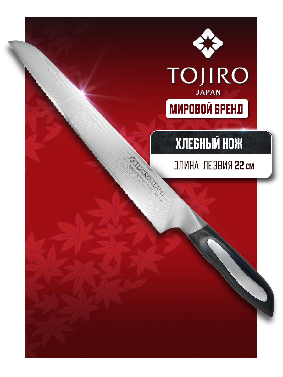 TOJIRO Кухонный нож для хлеба flash, длина лезвия 240 мм, сталь vg10, 63 слоя, рукоять микарта FF-BR240 интересное: