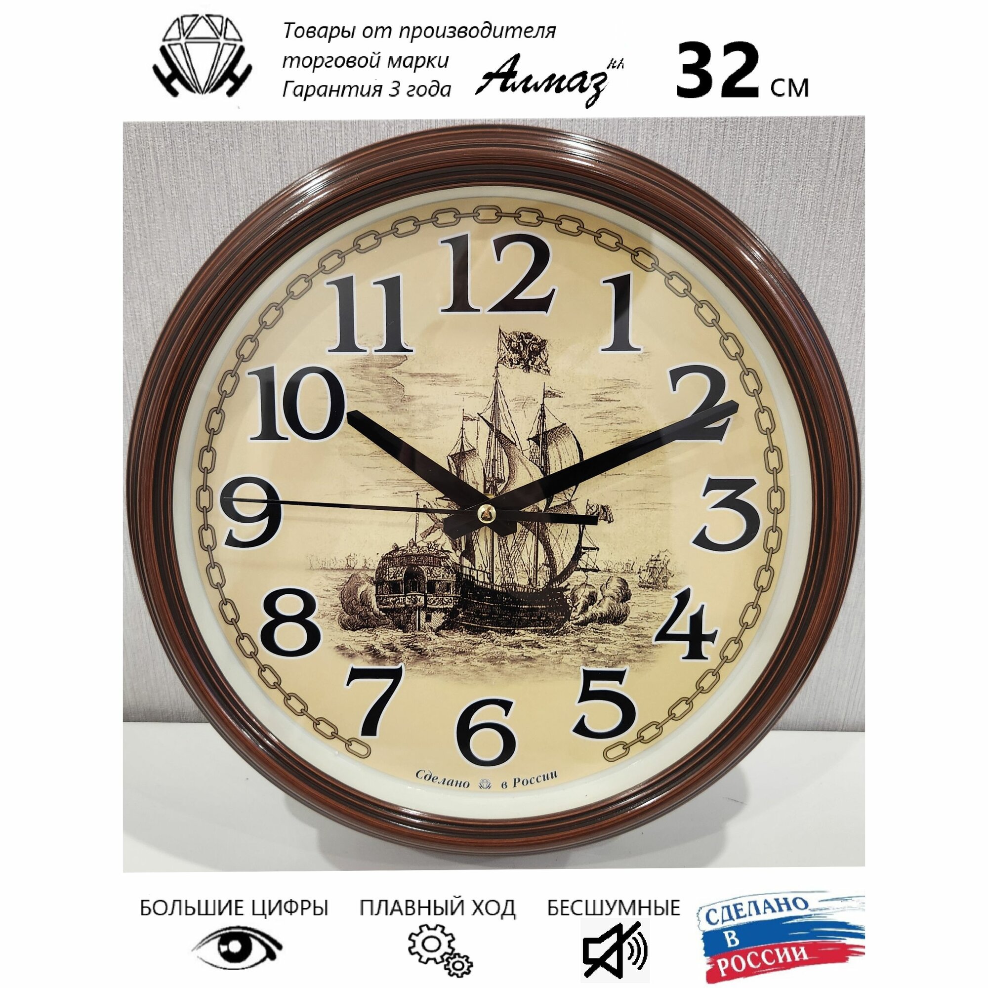 Часы настенные АлмазНН диаметр 32 см бесшумные с крупными цифрами А25 интересное:
