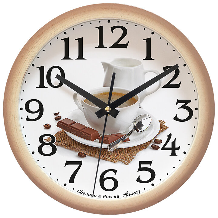 Купить Часы Настенные Алмаз 22,5 см, бесшумные на кухню кофе Е18