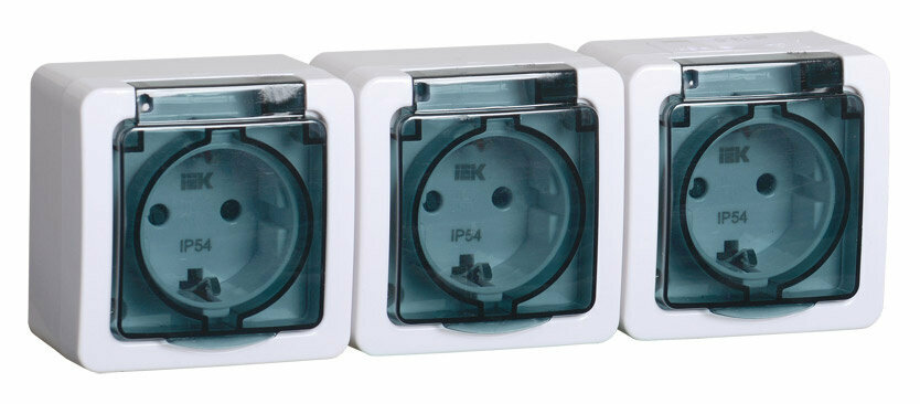 Розетка (колодка) 3-местная IEK РБ33-1-0м IP44 с защитными крышками