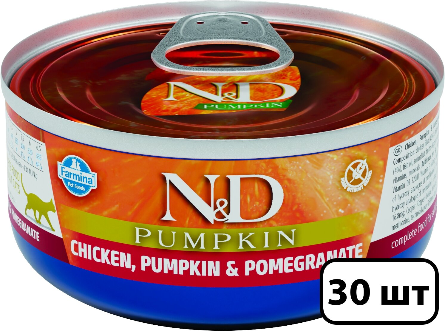 Купить FARMINA CAT N&D CHICKEN, PUMPKIN & POMEGRANATE беззерновые д взр кош кур,тыква,гранат банка 70 гр 70 гр х 30 шт