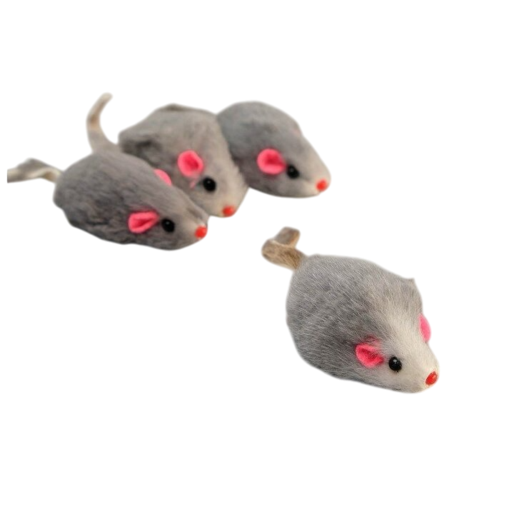 Мышка серая (в наборе 4 шт), 50 мм, игрушка для кошек и котят, игрушка из натурального меха с погремушкой