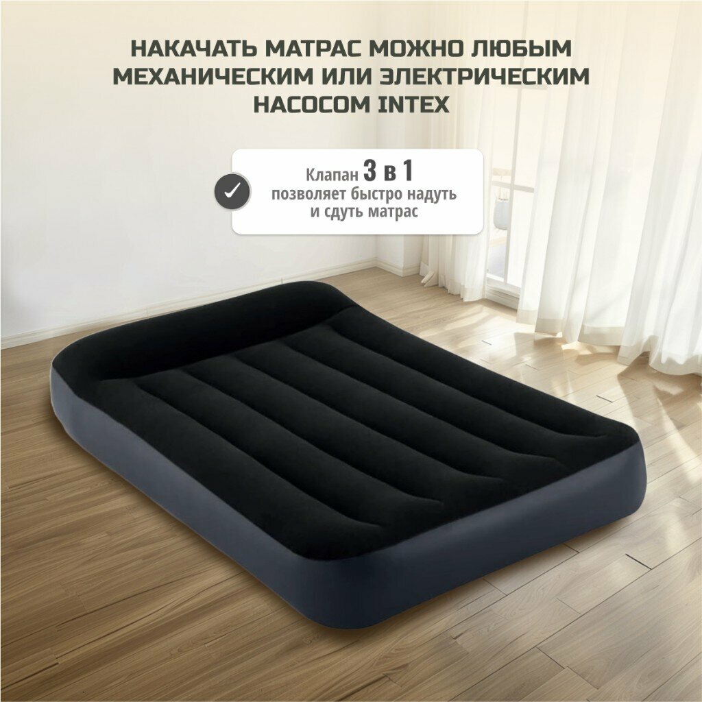Матрас надувной Intex, 203х152х25 см, 64150ND, насос встроенный, электрический, флокированный, 273 кг