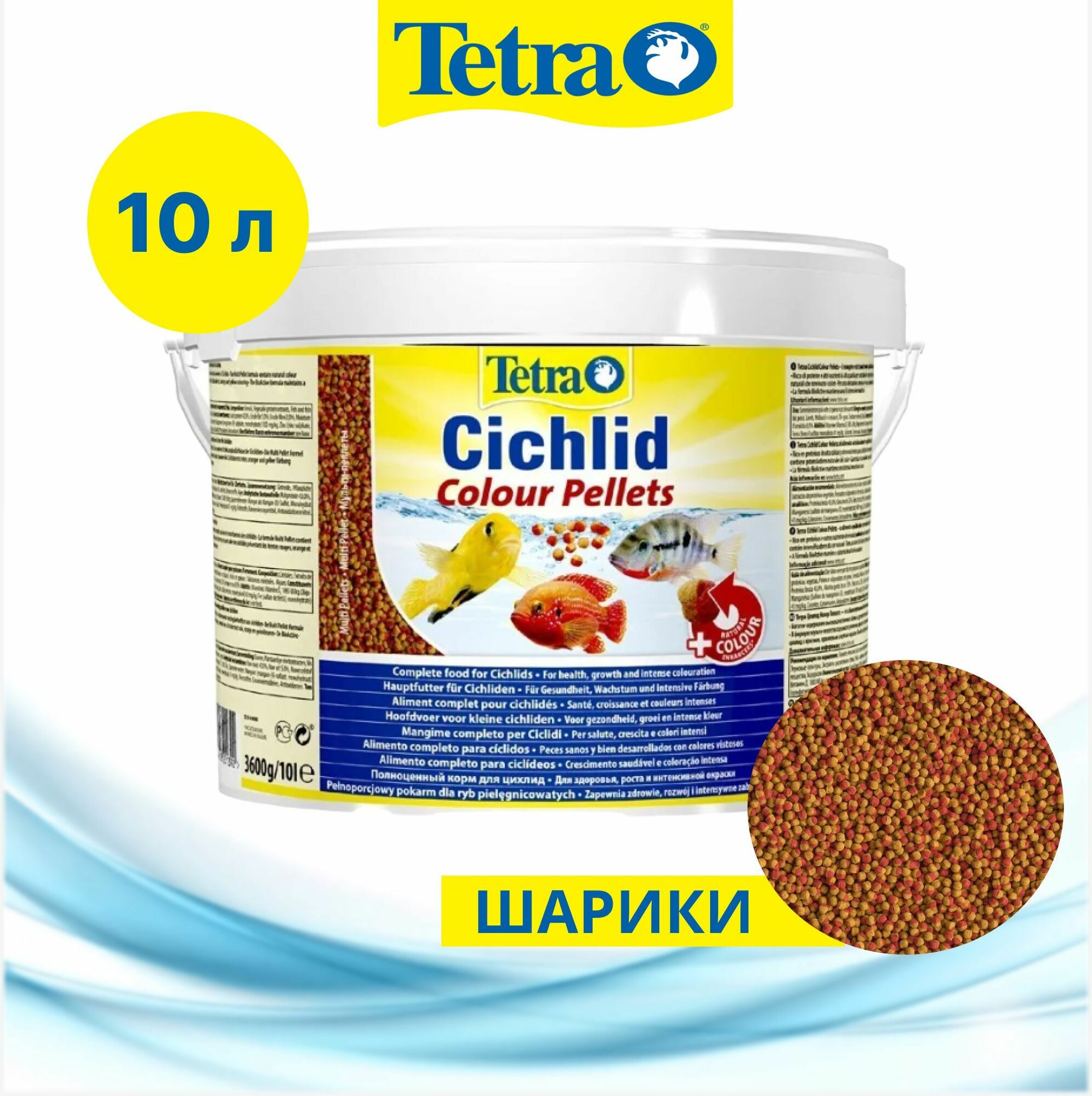 Корм Tetra Cichlid Colour Pellets 10 л, шарики для цихлид, усиливает яркость окраски